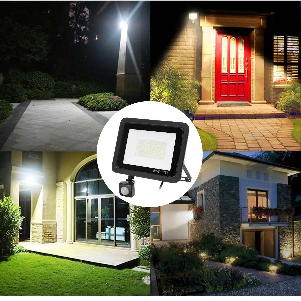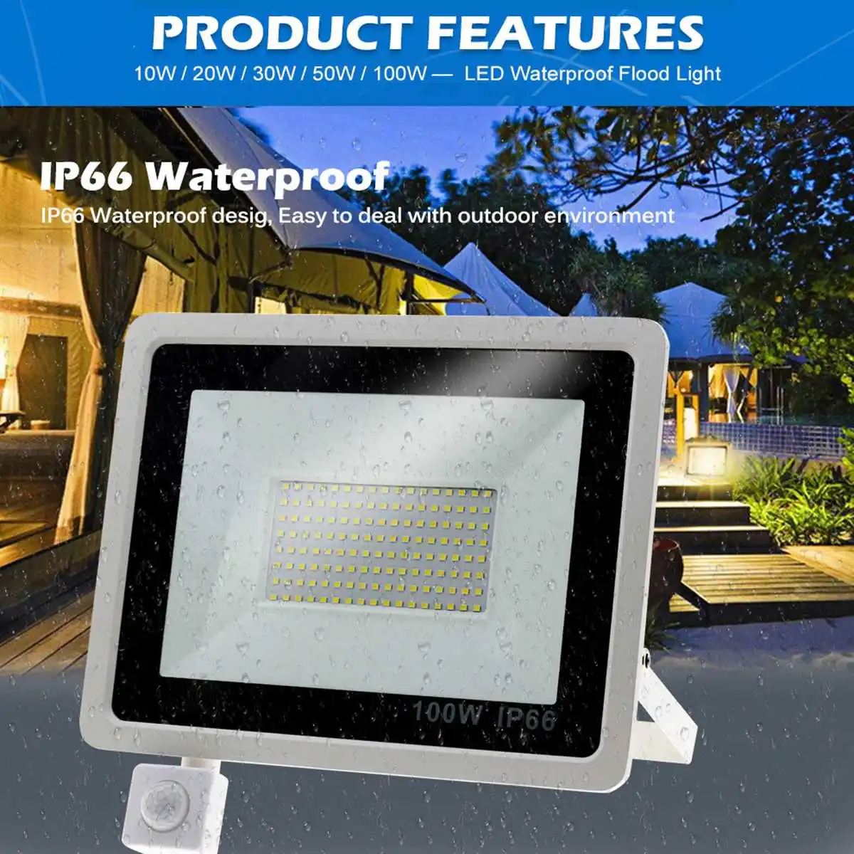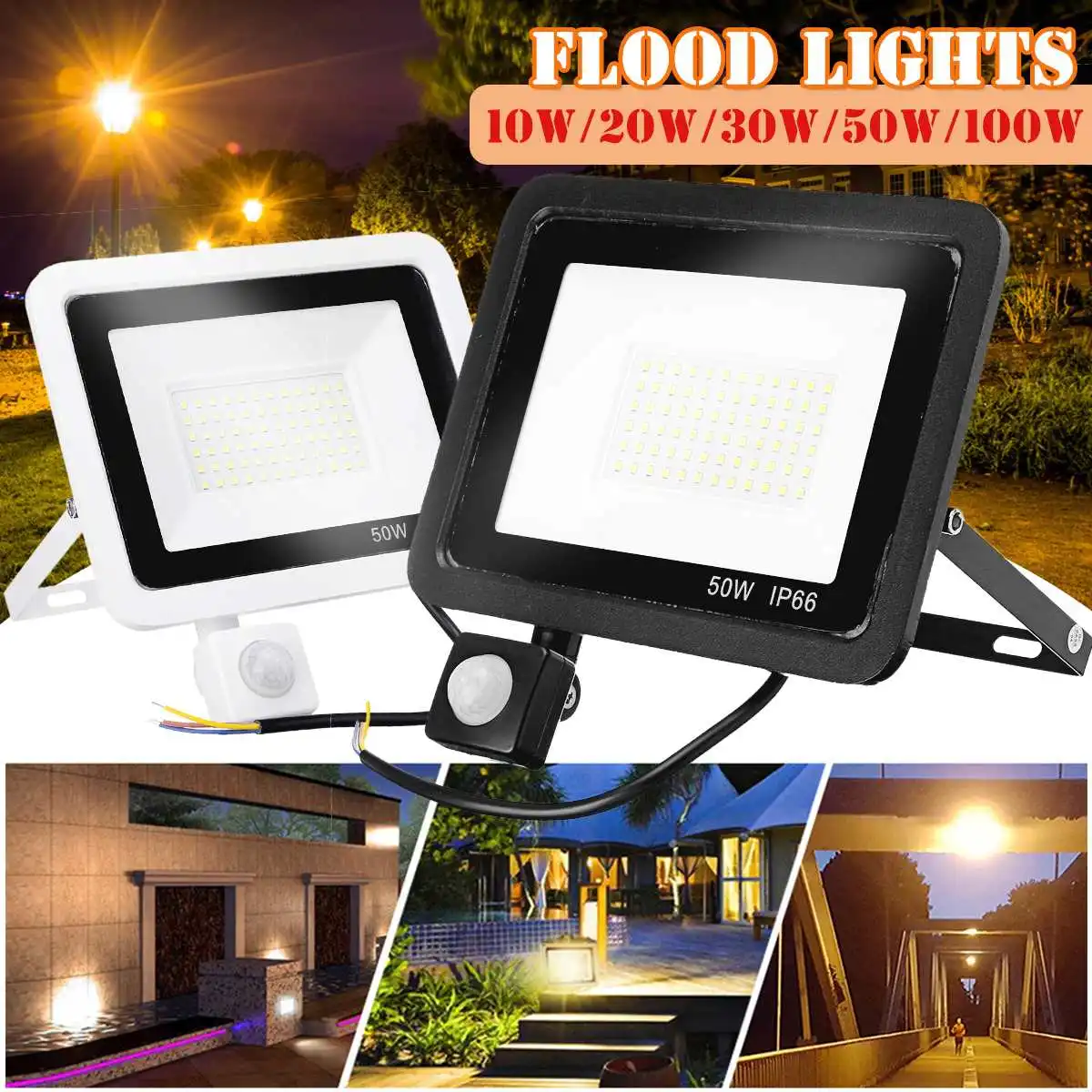 Уличный светодиодный прожектор с пассивным ИК датчиком движения, точечный водонепроницаемый садовый светильник для улицы, ландшафтное освещение, 100 Вт, 50 Вт, 30 Вт, 20 Вт, 10 Вт