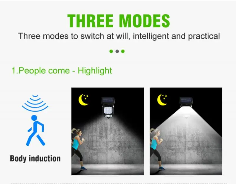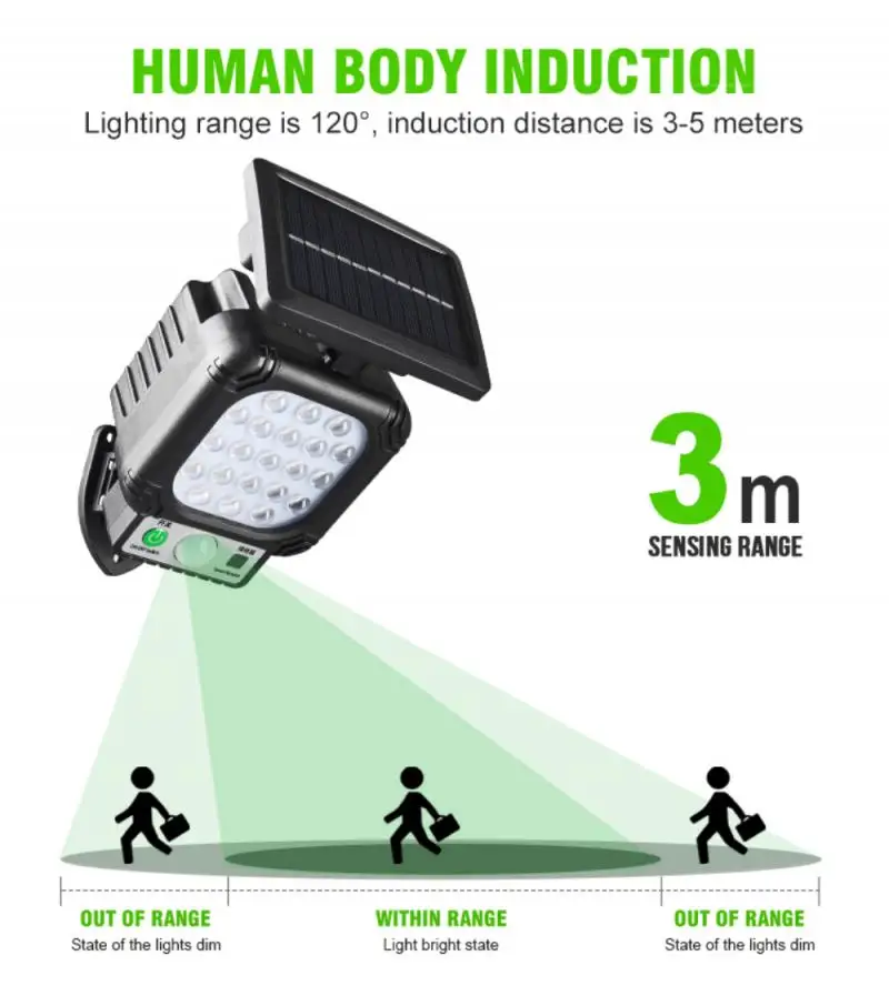 -Автоматическое включение: датчик движения PIR может сканировать источник тепла, который непрерывно перемещается в пределах диапазона обнаружения. Когда кто-то появится в области, светильник автоматически включится.