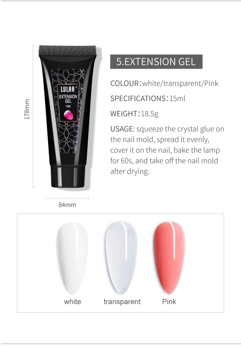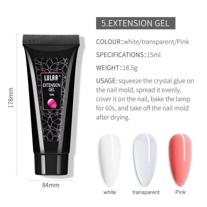Использование: выдавите кристаллический клей на форму ногтя, равномерно распределите его, закрепите его на ноготь, испечь лампу в течение 60 с, и снимите форму ногтя после сушки