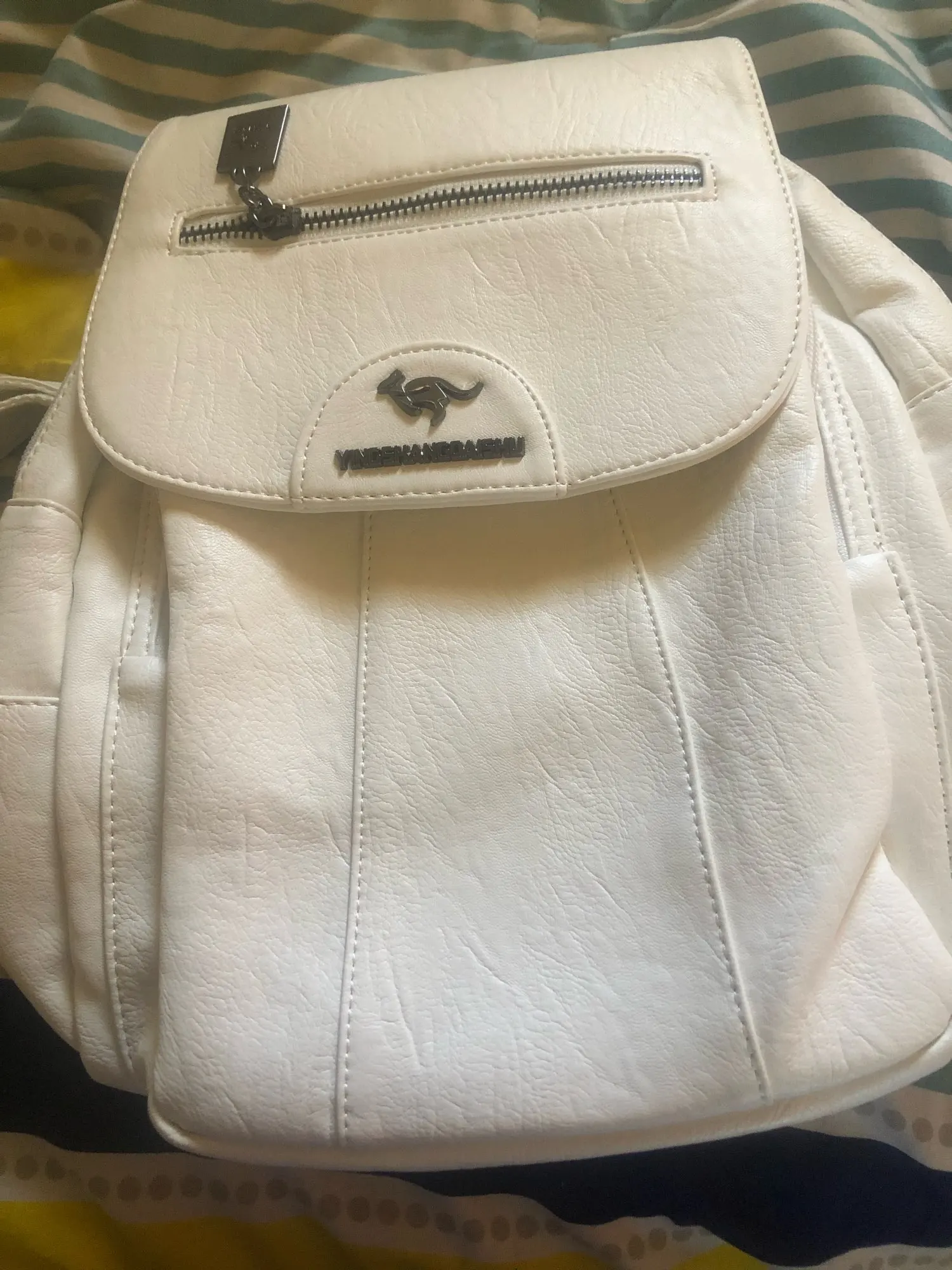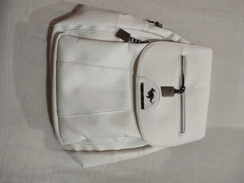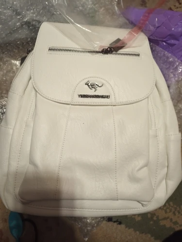 Рюкзак понравился. Реально белый. Впереди на клапане замок молния, просто обманка. Жалко, что не кармашек. Рекомендую продавца.