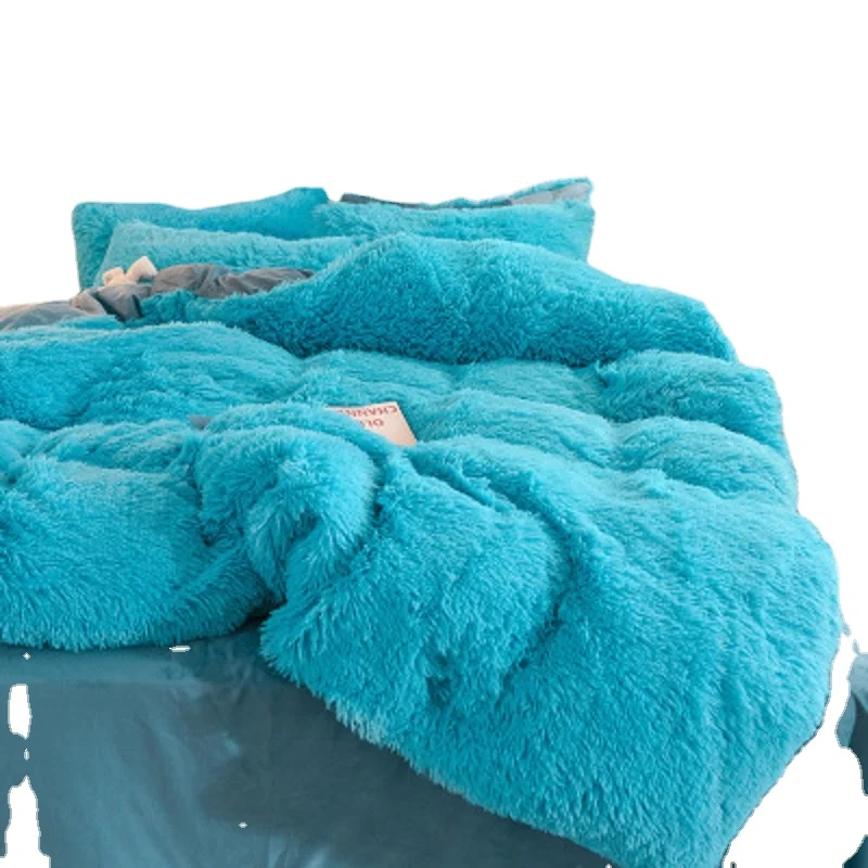 Новый плюшевый пушистый теплый шерстяной Комплект постельного белья норковый бархатный пододеяльник простыня наволочка четыре предмета зимняя Прямая поставка