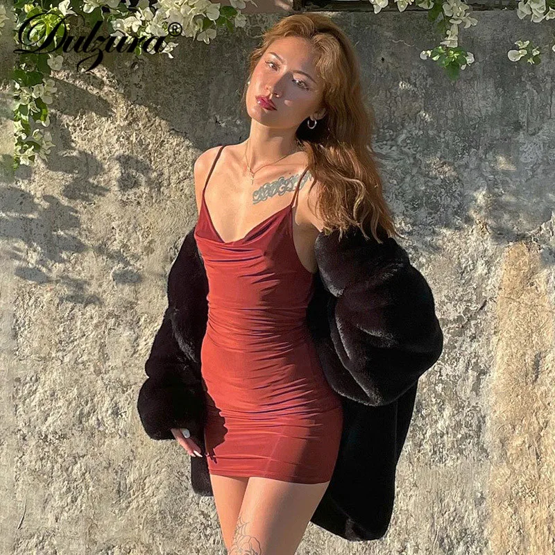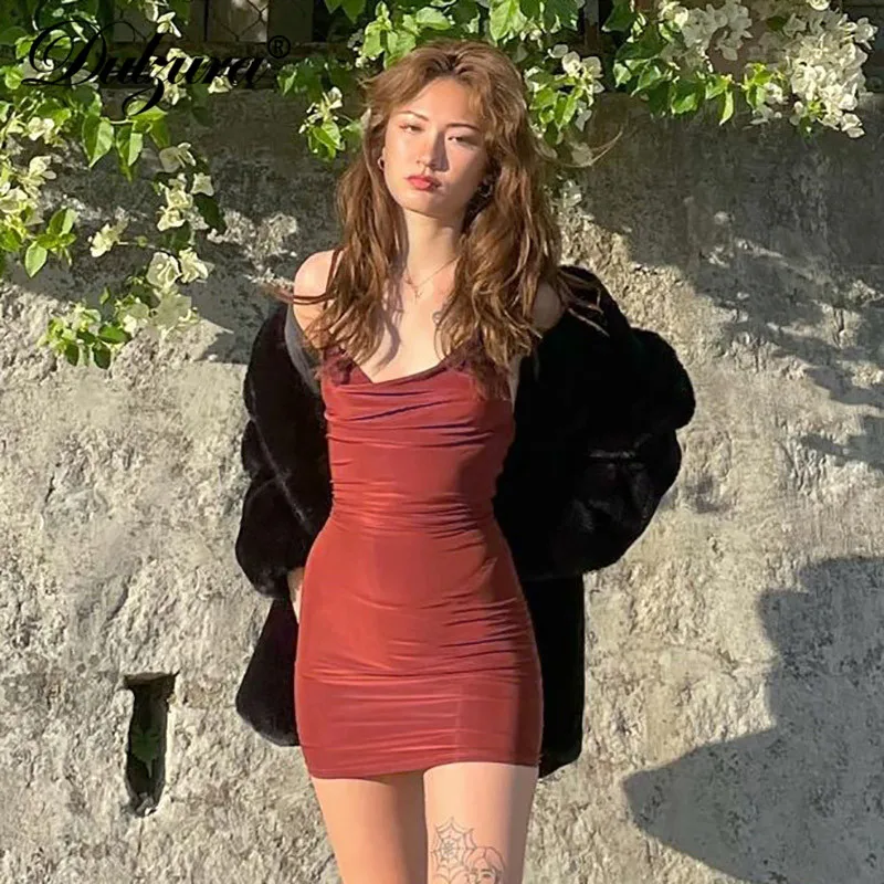 Женское мини-платье на бретелях Dulzura, однотонное облегающее платье, элегантная Клубная одежда для вечеринок, Y2K, лето 2021
