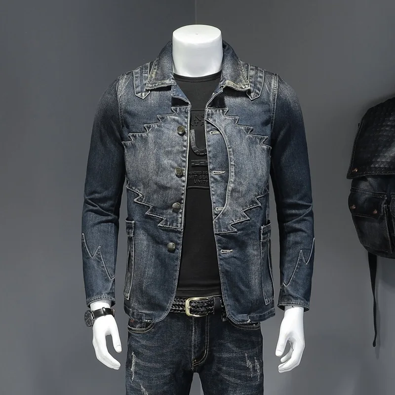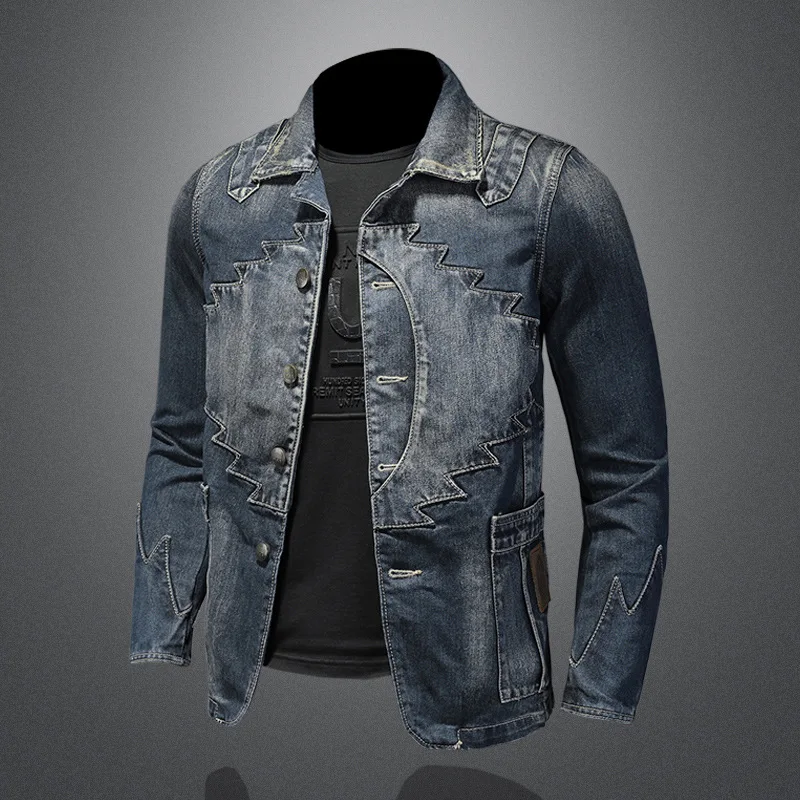 Джинсовая куртка мужская однотонная, повседневная однобортная Джинсовка с лацканами, приталенный силуэт, осень 2021