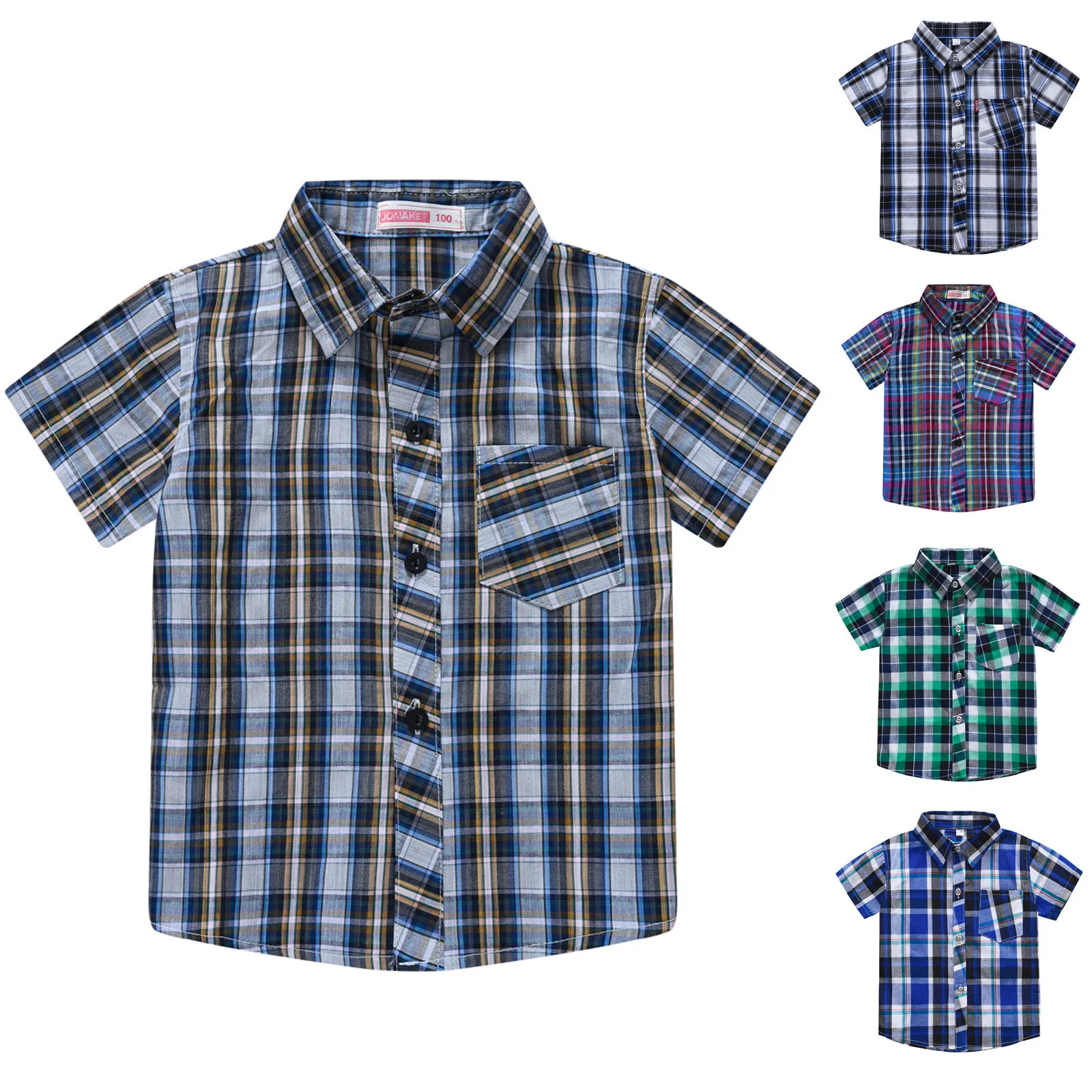 Рубашка для мальчиков, с коротким рукавом, в клетку, в британском стиле, 2021