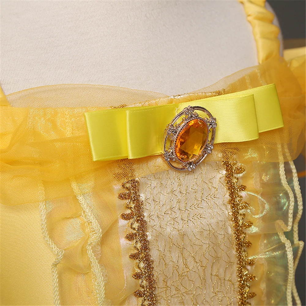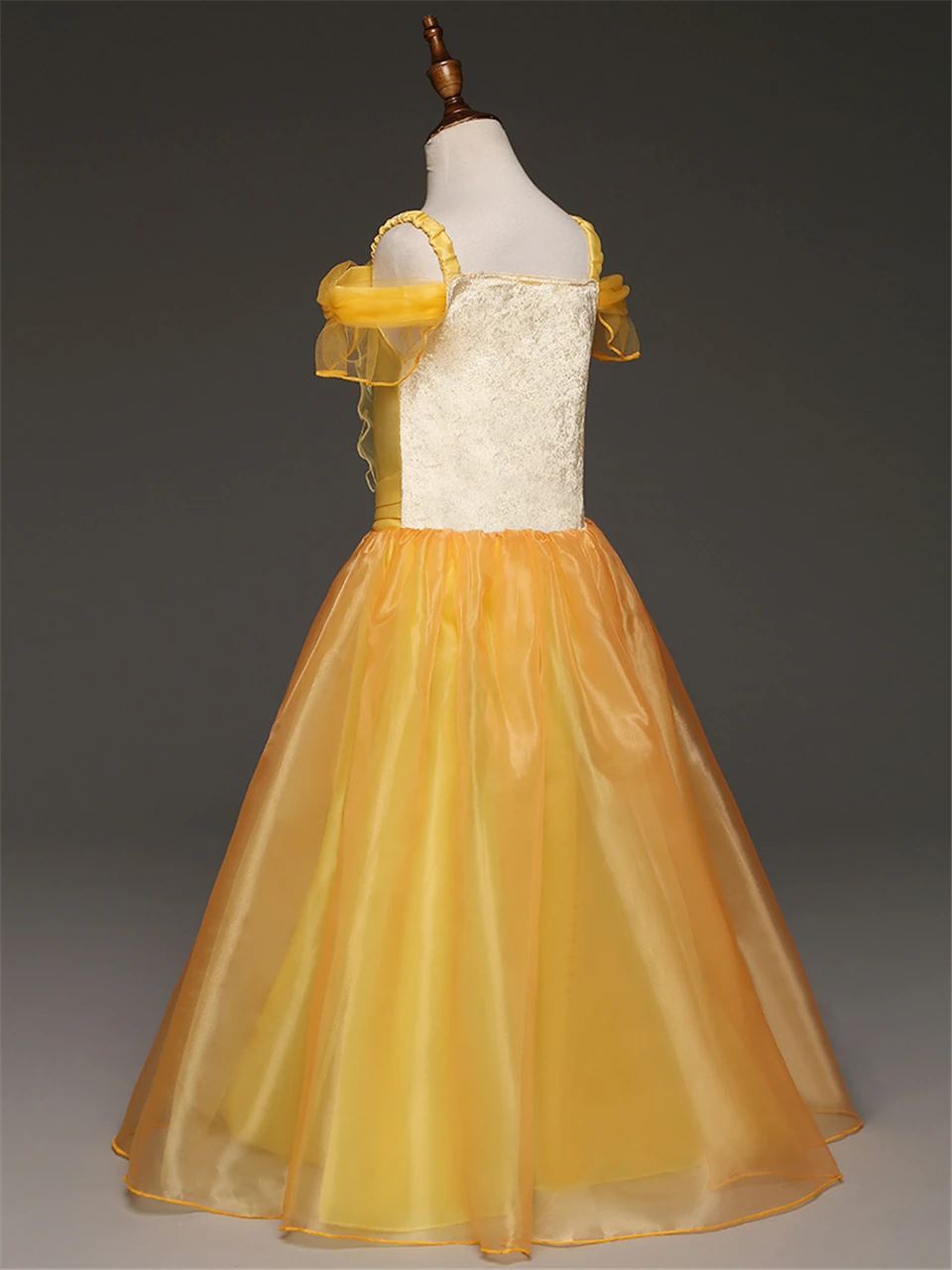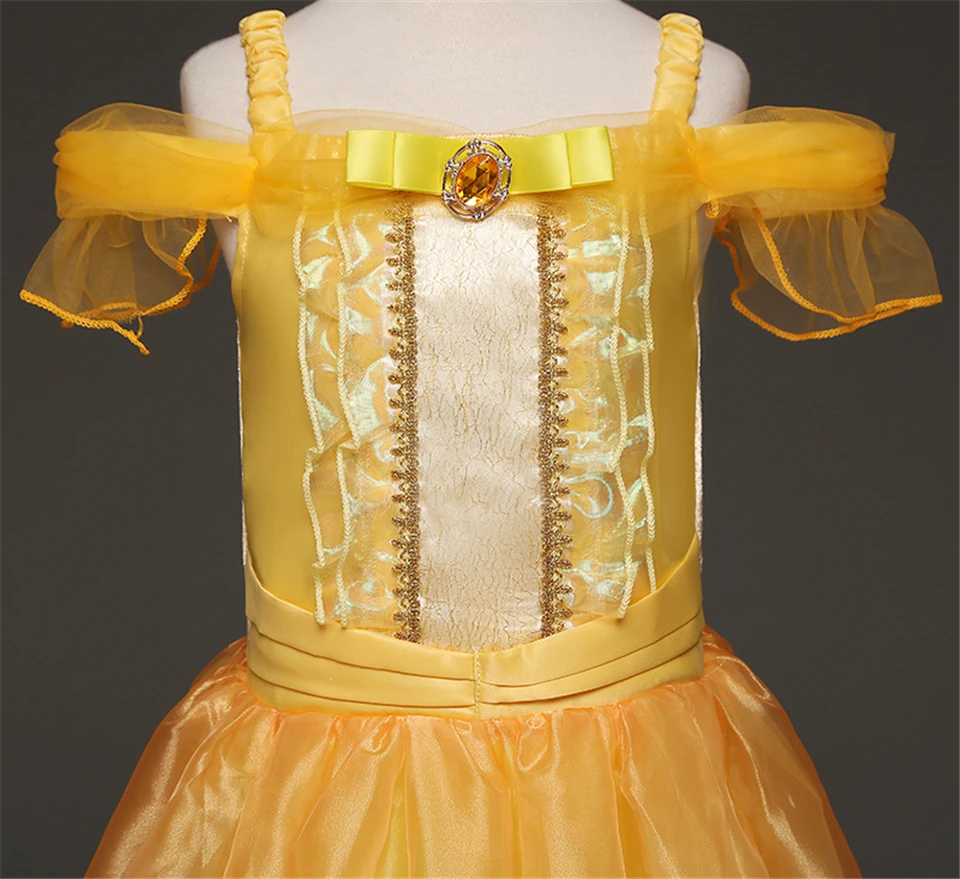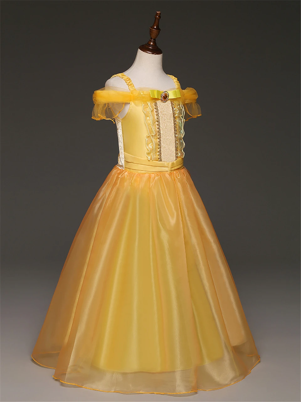 Платье принцессы Белль для девочек, желтое, с открытыми плечами, для выступлений, для Хэллоуина