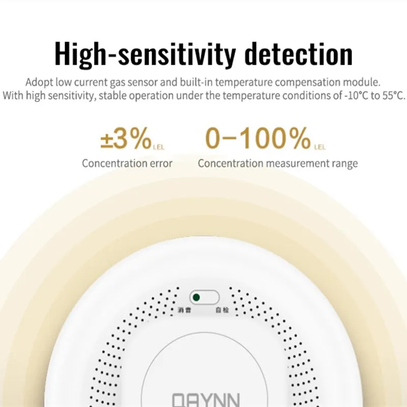 【Обнаружение высокой чувствительности】Использование низко-токовых газовых датчиков, встроенный модуль компенсации температуры, с высокой чувствительностью, точной сигнализацией, для предотвращения пожаров.