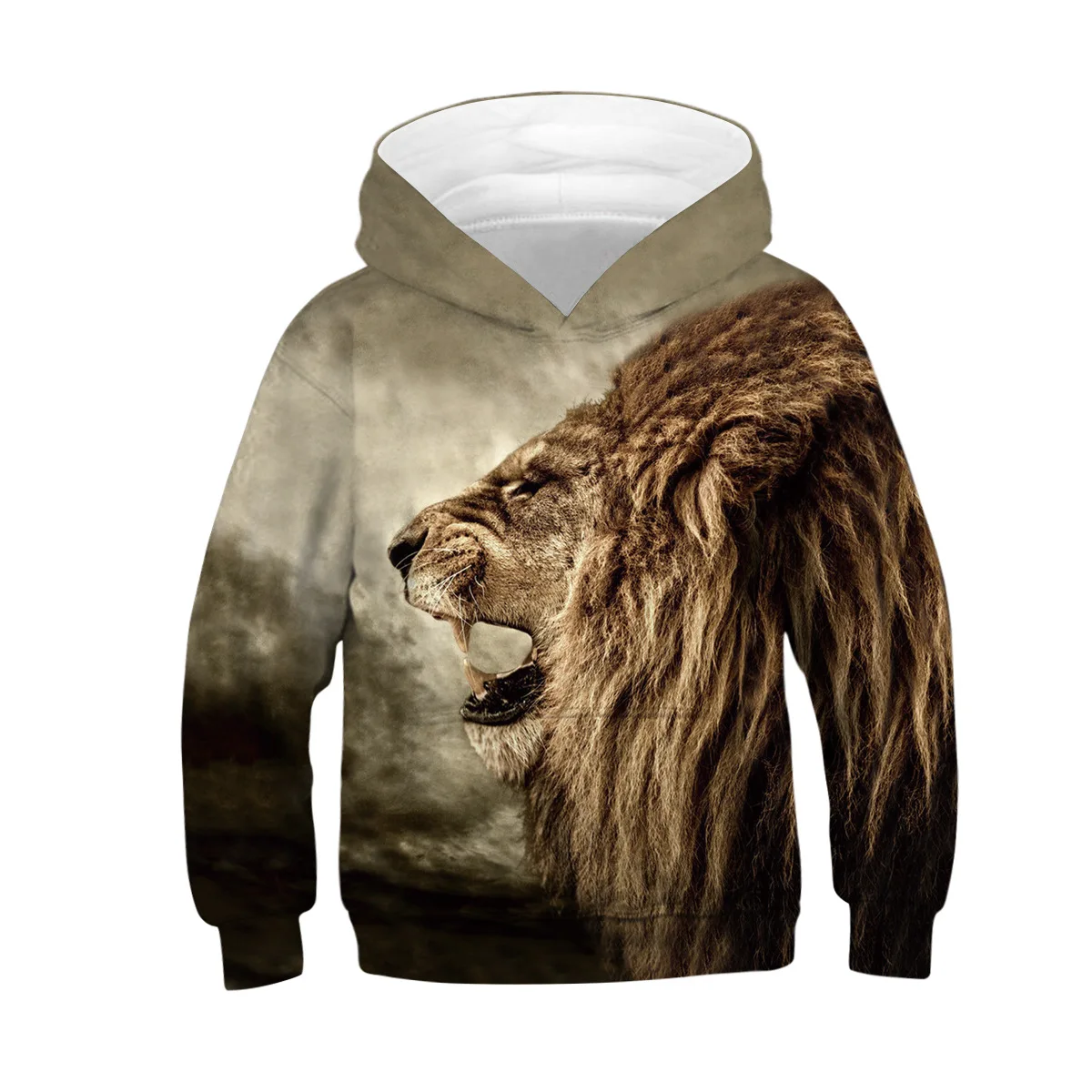 Властные Лев, толстовки для мальчиков, 3d цифровая печать, тигр и волк, куртка для мальчиков, большой размер, повседневный Детский свитер, женская одежда