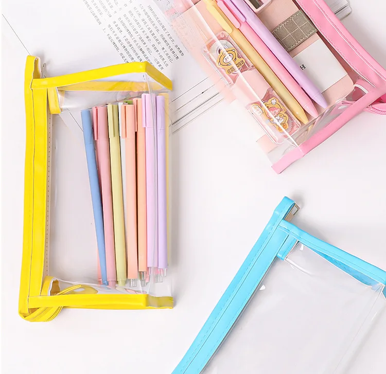 Однотонный чехол для карандашей, прозрачная водонепроницаемая сумка из ПВХ, канцелярские мешочки для девочек, обратно в школу от Kevin sasa Crafts