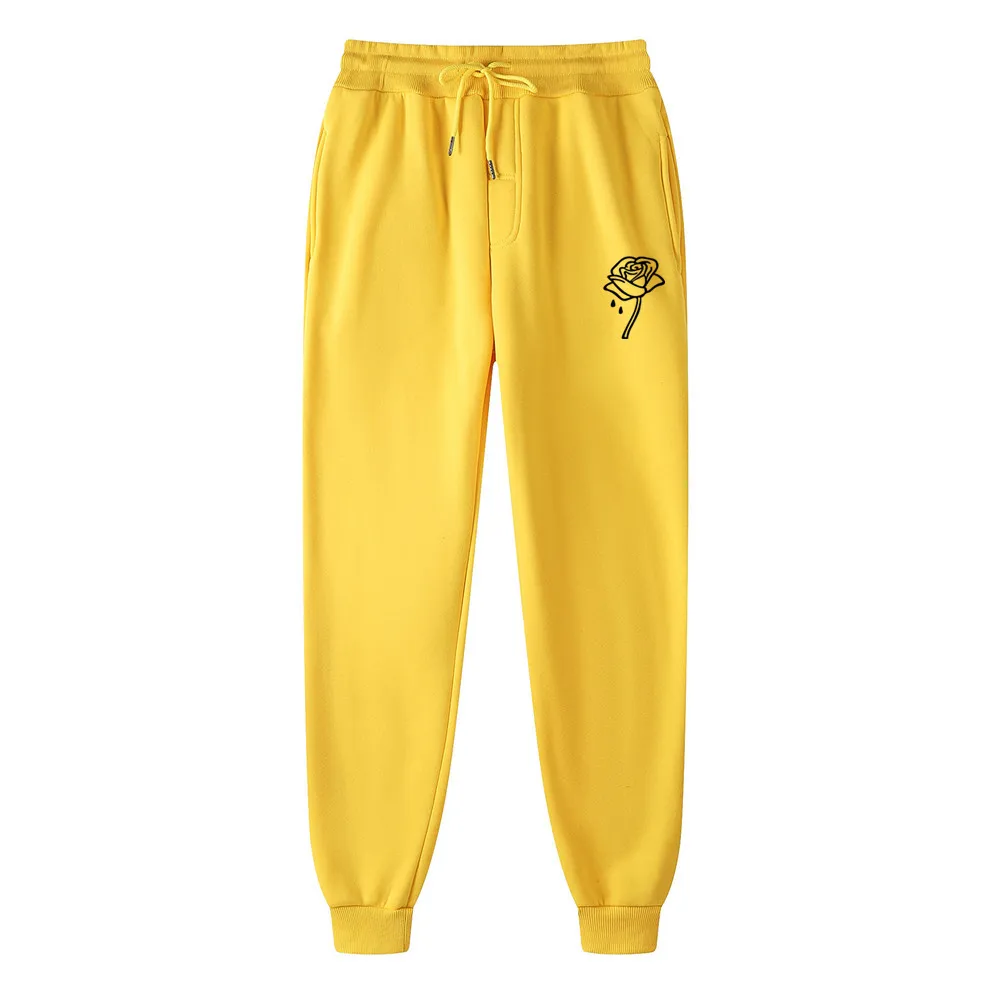 Брюки мужские спортивные для бега, брендовые мягкие Джоггеры для бодибилдинга и занятий спортом, с принтом в виде капель воды и розы, 14 цветов