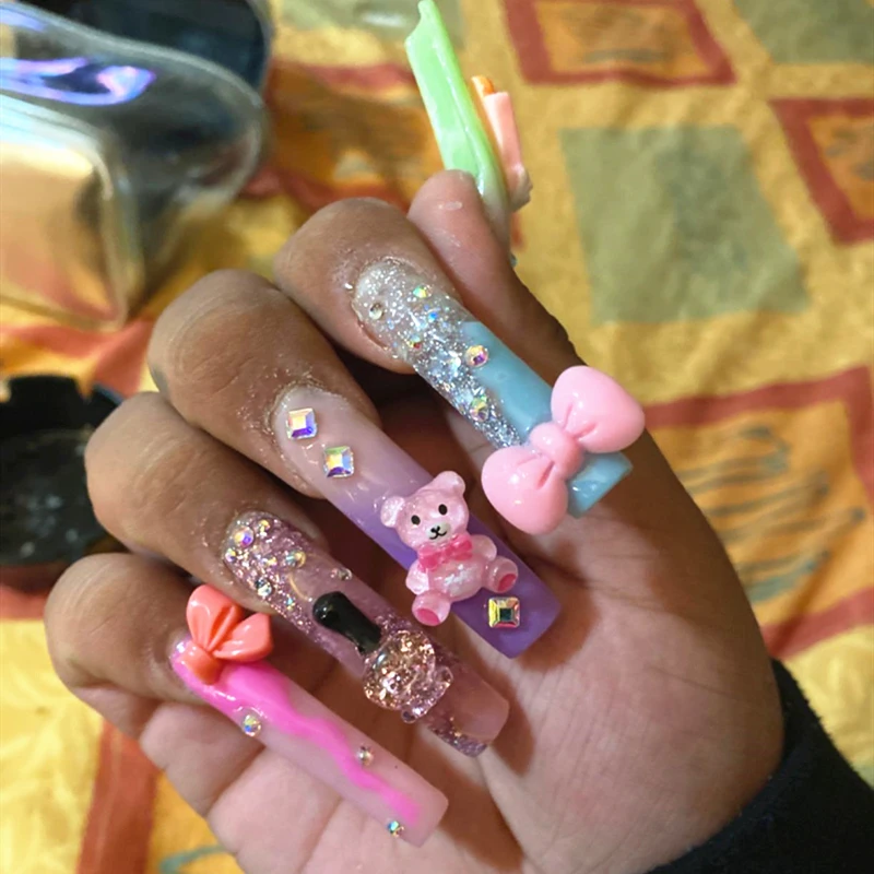 One Box Nail художественные талисманы 3D украшения со стразами для ногтей Kawaii Accessories Candy мультяшный медведь Подсолнух аксессуары для маникюра