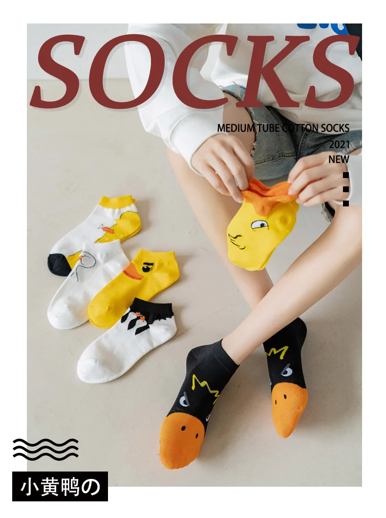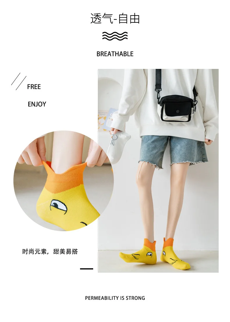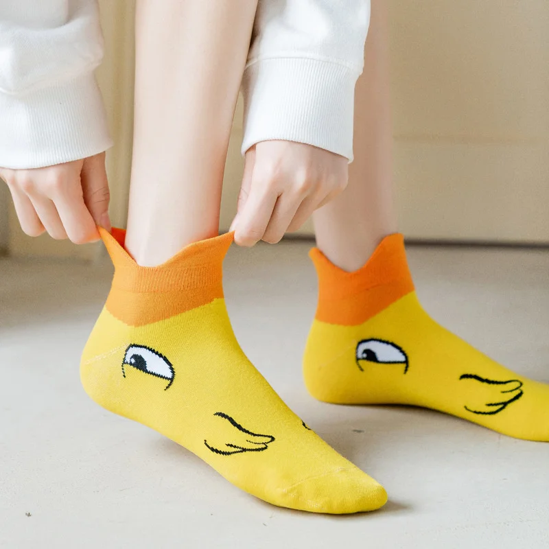 Носки женские весенне-летние, дышащие, с рисунком желтой утки