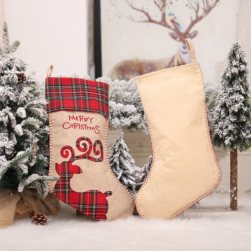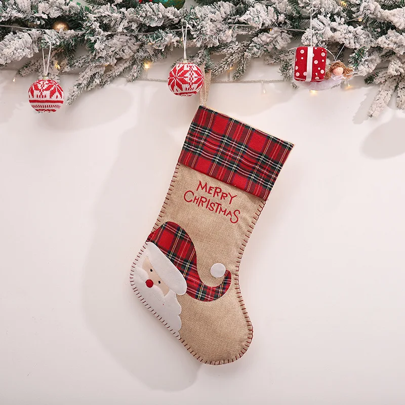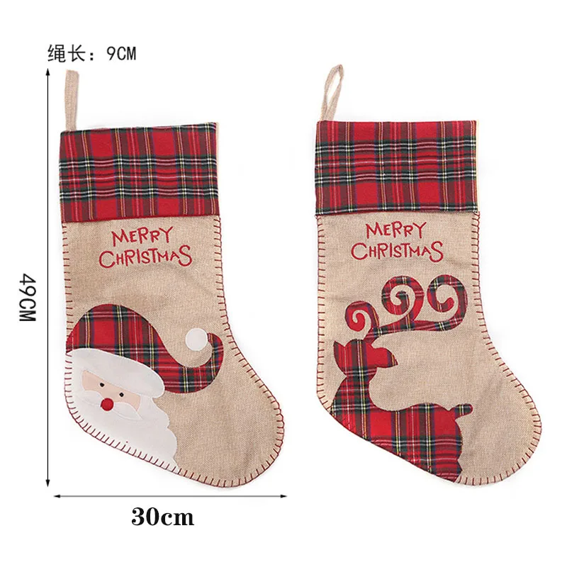Рождественский Декор, большая клетчатая сумка-чулок, конфетница, украшение для домашней вечеринки, камина, подвеска в виде носка
