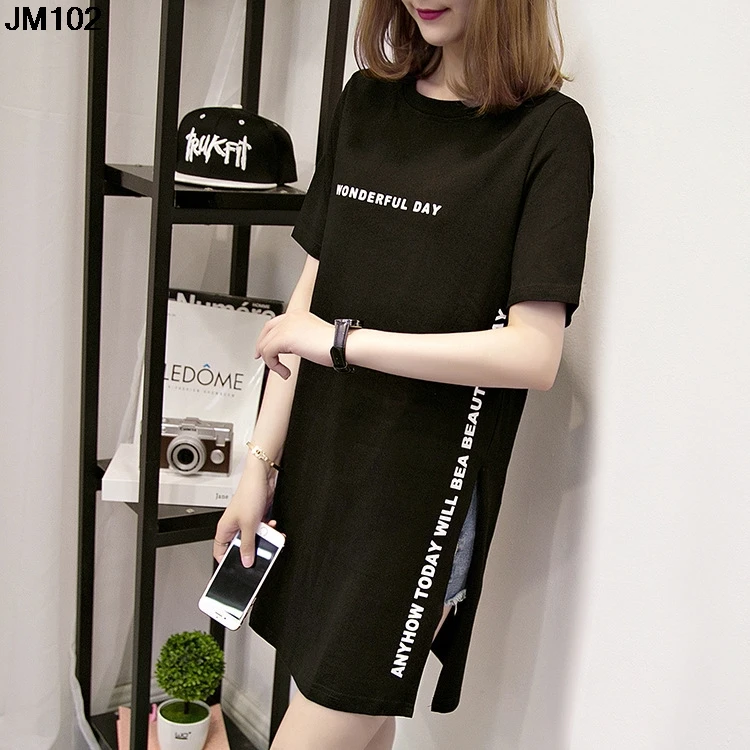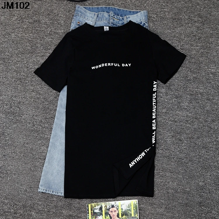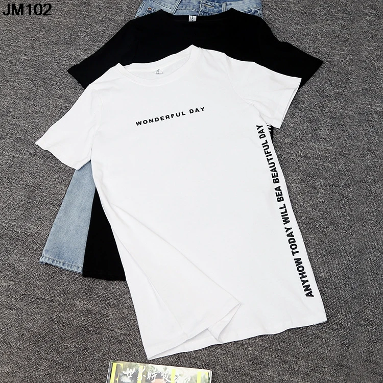Женская длинная футболка в Корейском стиле, свободная черная футболка большого размера с принтом прекрасного дня, в стиле Харадзюку, лето