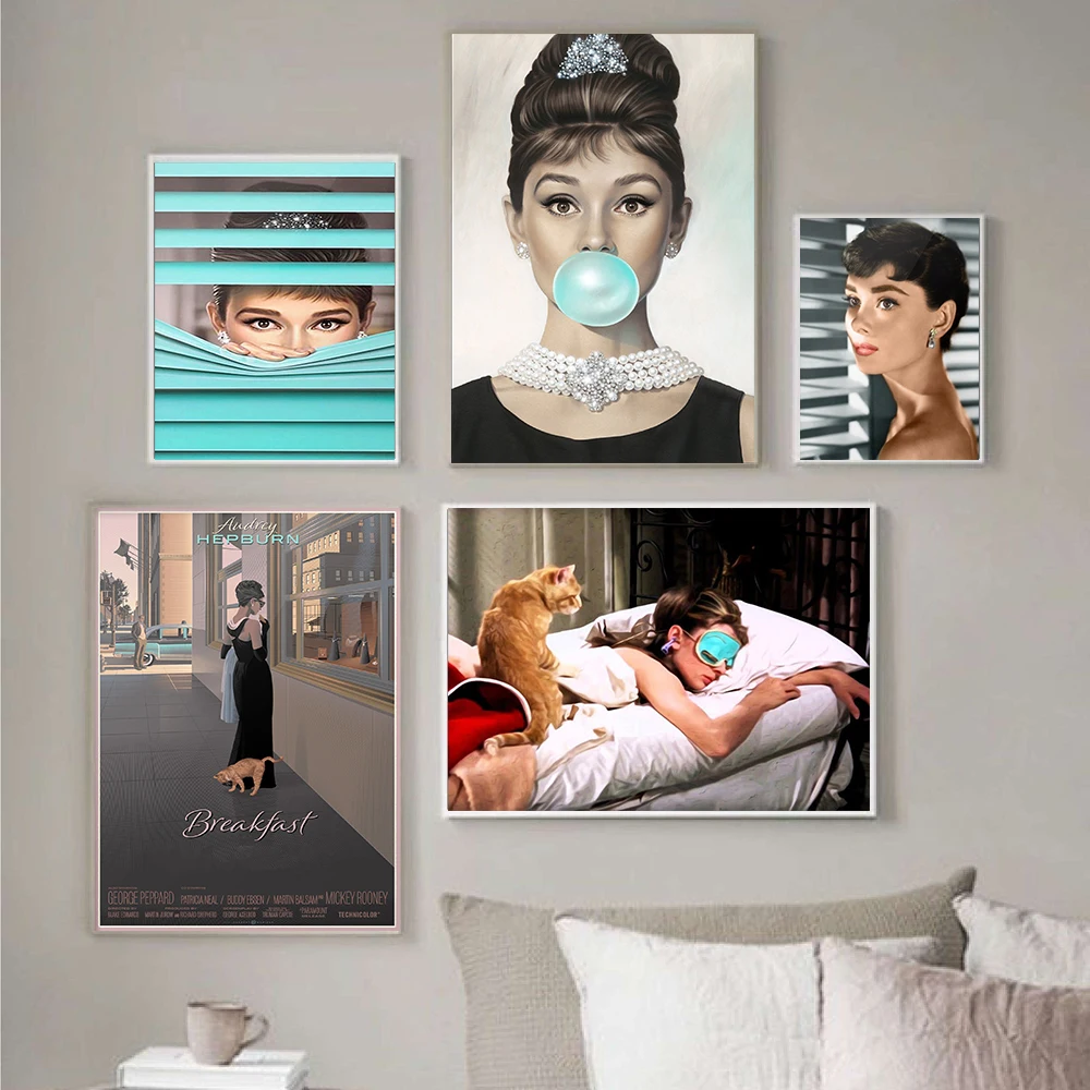 Настенная картина Одри Хепберн из пузырьков, модные постеры на холсте, принты на завтрак, милые картины с суперзвездами, картины для декора гостиной
