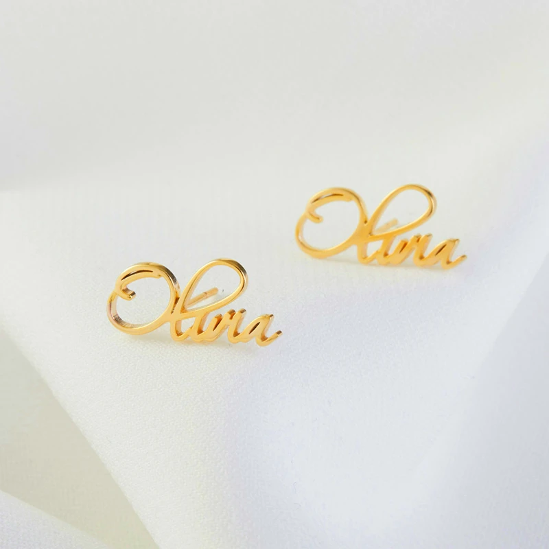 Милые серьги-гвоздики в виде шрифтов с персонализированным именем д...
