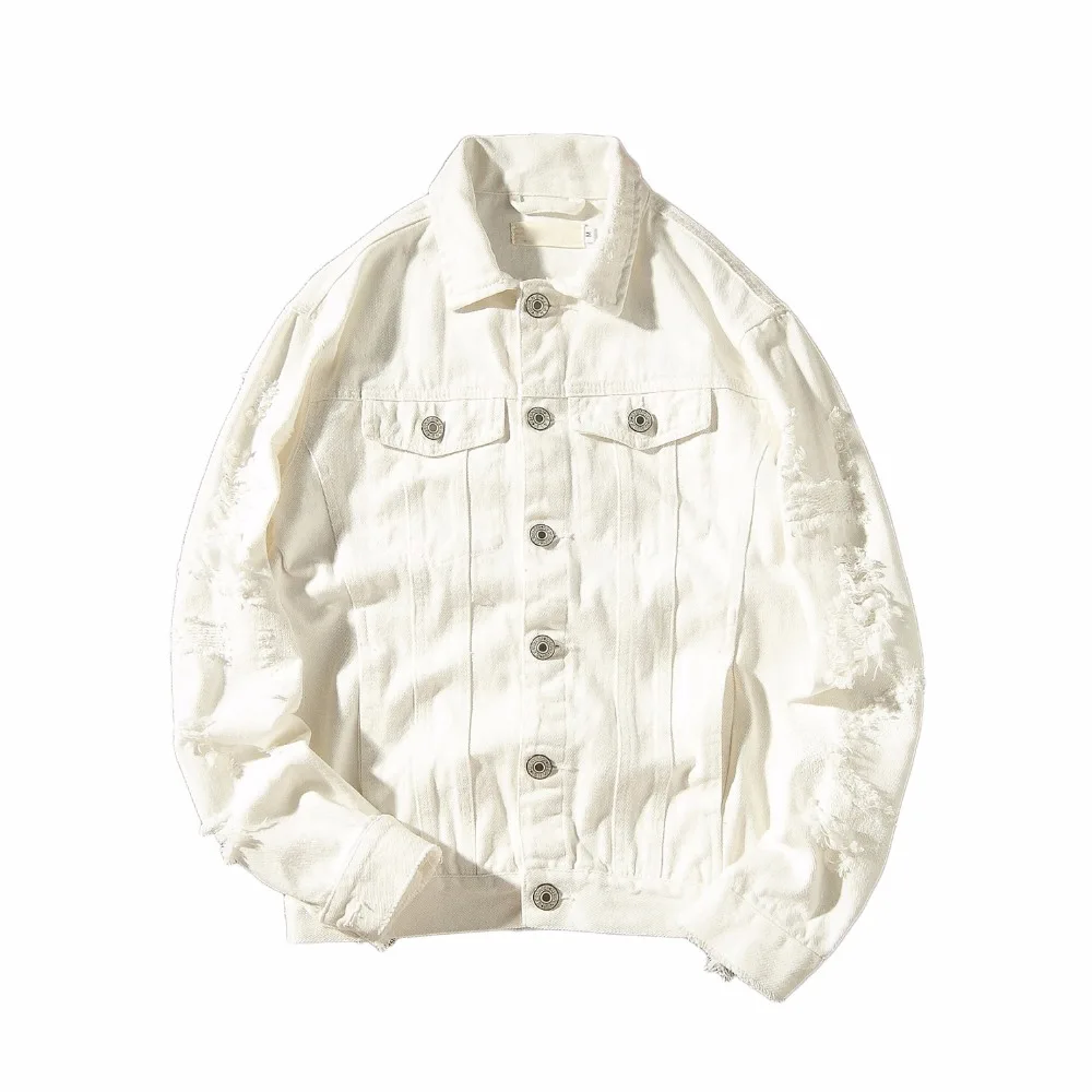 Мужская джинсовая куртка, приталенная куртка из хлопка, с дырками, красного, белого, черного цветов, весна-осень, размера плюс