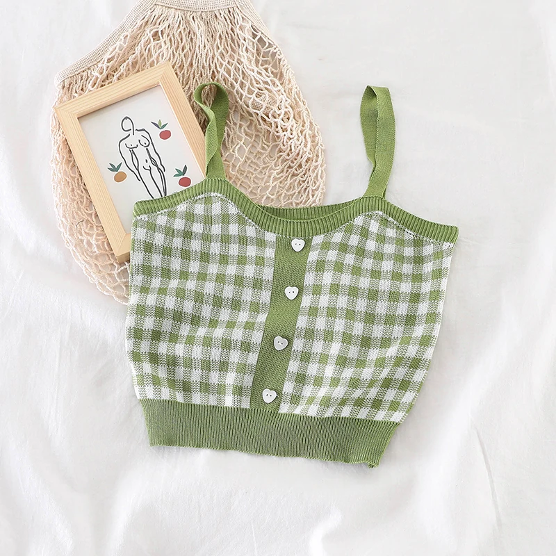 HELIAR Женские клетчатые Короткие топы без рукавов трикотажные укор...