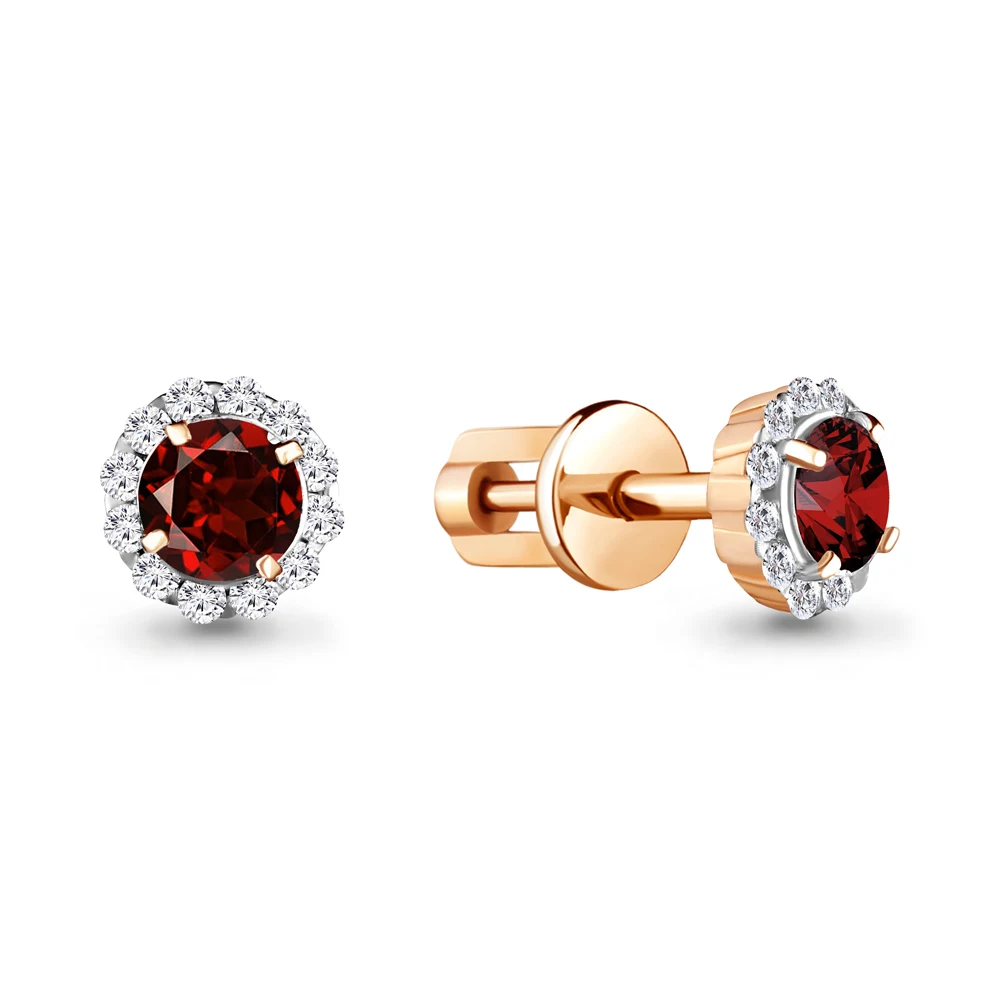 Серьги тренд 2022 NOVOZOLOTO гвоздики пусеты, серебро подлинное 925 пробы производство Россия, гранат, покрытие золото, оригинал