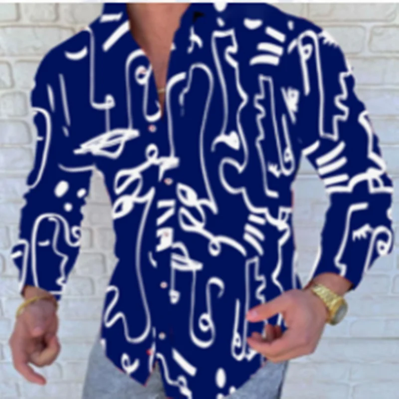 Рубашка мужская с длинным рукавом, Повседневная блуза с принтом, уд...