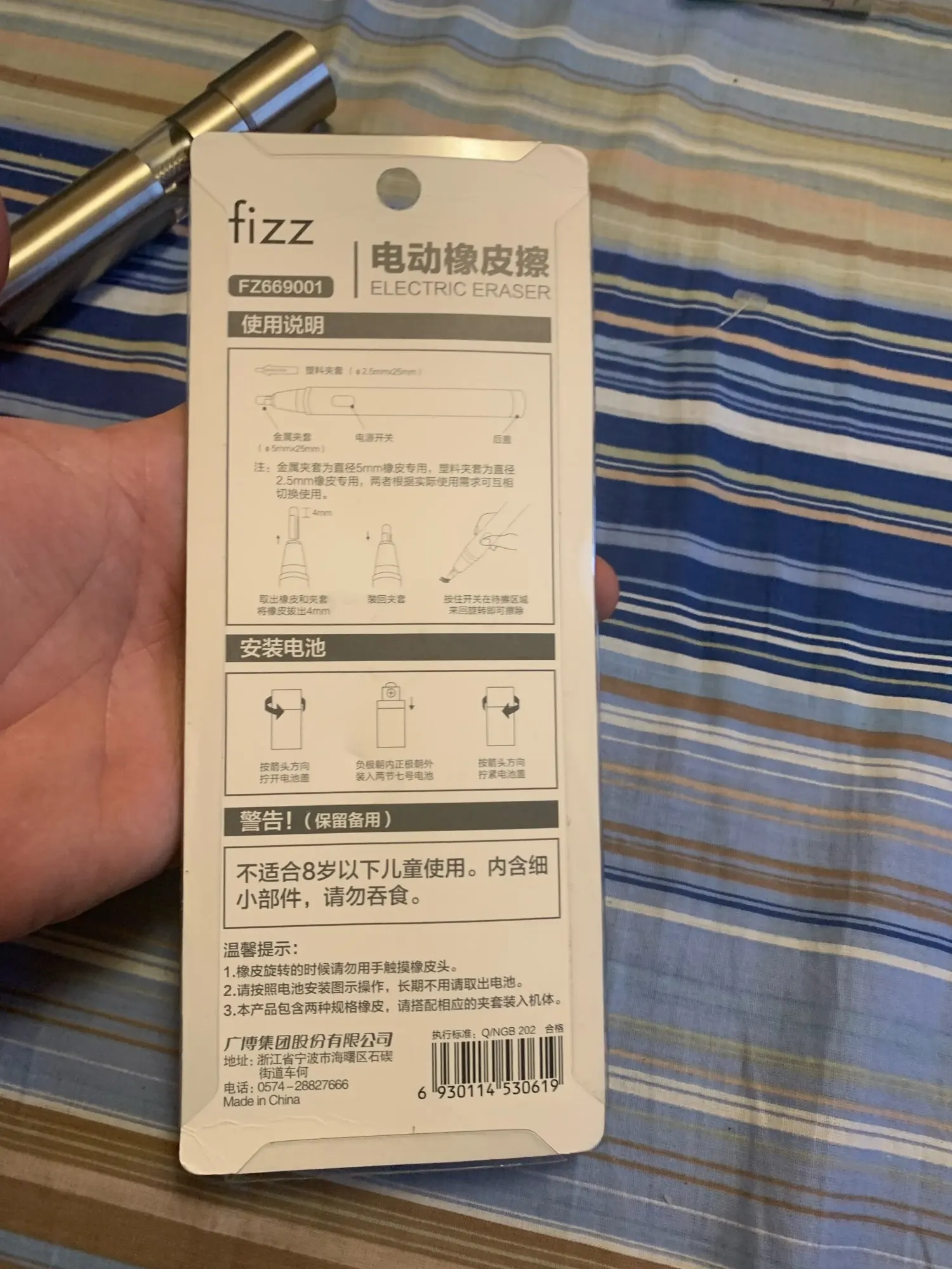 Наименование: Электрический ластик fizzМатериал: АБС-пластикЦвет: черныйРазмер упаковки: 225*90 ммРазмер изделия: 176*18*18 ммКоличество: Электрический ластик/20 заправок/толщина конверсии головкиНаименование: Электрический ластик для пополненияМатериал: TRPЦвет: белыйУпаковка: 70*55*25 ммКоличество: 2,5 мм * 25 мм (20 шт.)
