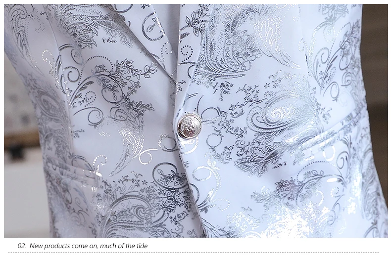 Новинка 2021, мужской Роскошный Блейзер, куртка с золотым цветочным рисунком, приталенный белый костюм в британском стиле, мужская повседневная одежда на весну и лето