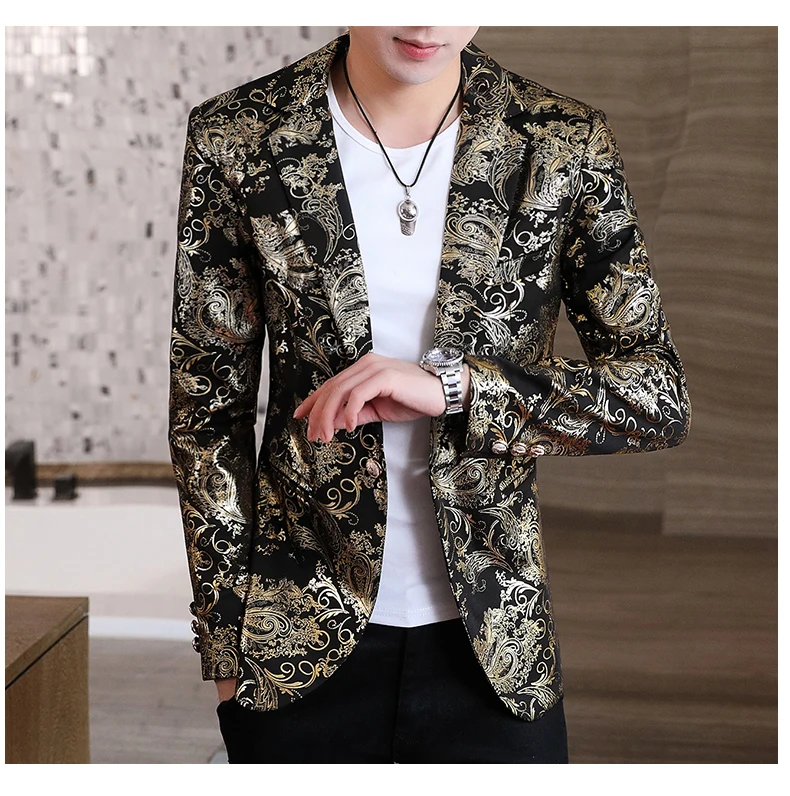 Осень 2022, мужской блейзер с бронзовыми цветами, Молодежный тонкий...