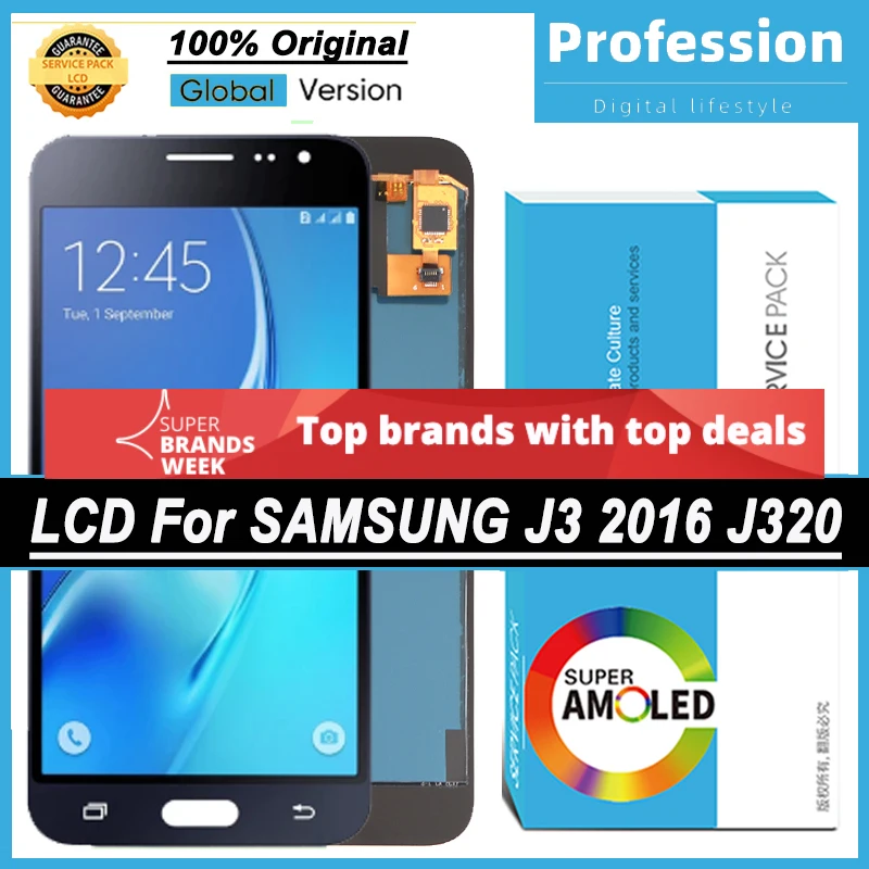 100% Оригинальный 5,0 ''дисплей для Samsung Galaxy J3 2016 J320 J32...