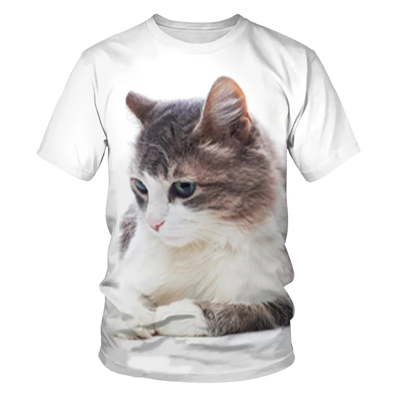 Футболки с 3D принтом кошки для мужчин и женщин, милые футболки с ж...