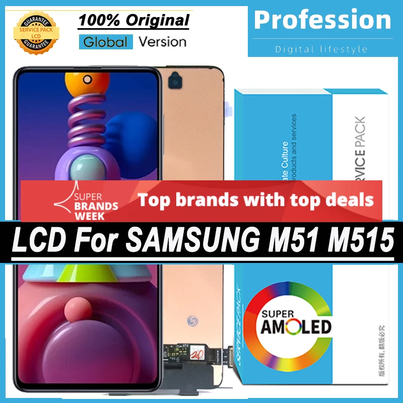 100% Оригинальный 6,7 ''AMOLED дисплей для Samsung Galaxy M51 M515 M515F M515FDS Полный ЖК сенсорный экран Запасные части + Сервисный пакет