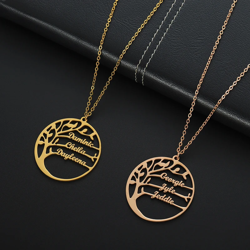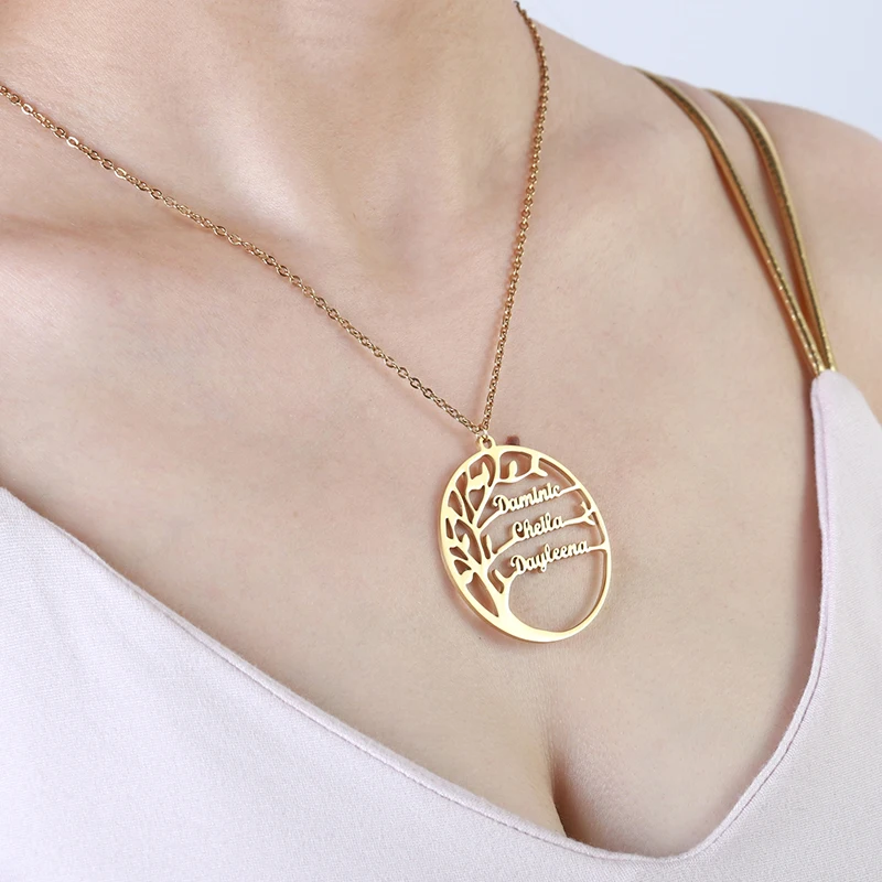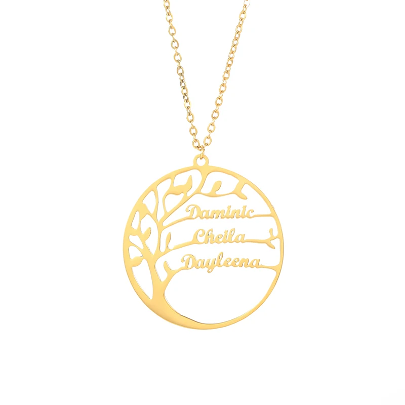 Ожерелье из нержавеющей стали с изображением дерева жизни, ожерелье с именем под заказ, Женская Длинная цепочка с золотым покрытием, ожерелья, подвеска в подарок