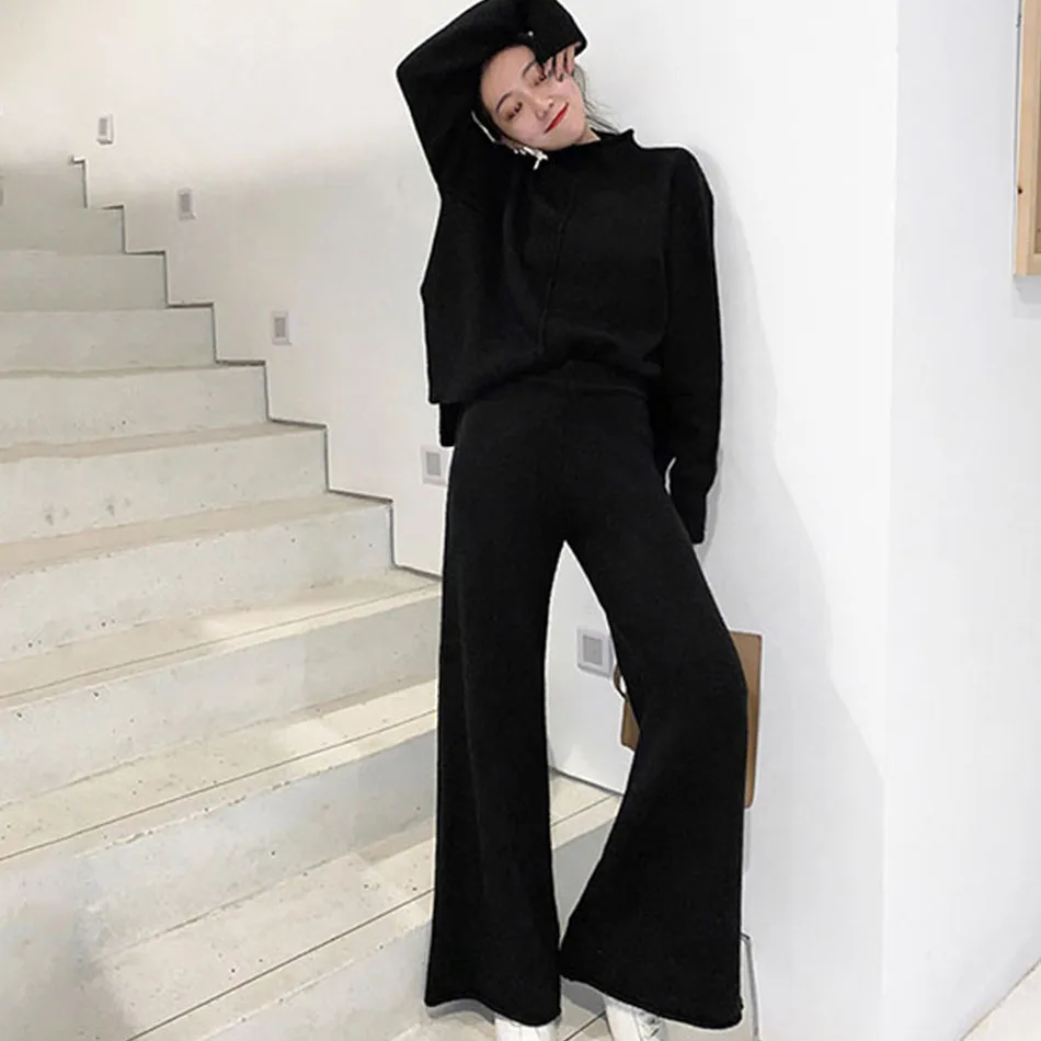 Женский трикотажный спортивный костюм Genayooa, комплект из двух предметов: Топ с длинным рукавом и штаны, верхняя одежда в Корейском стиле, зима