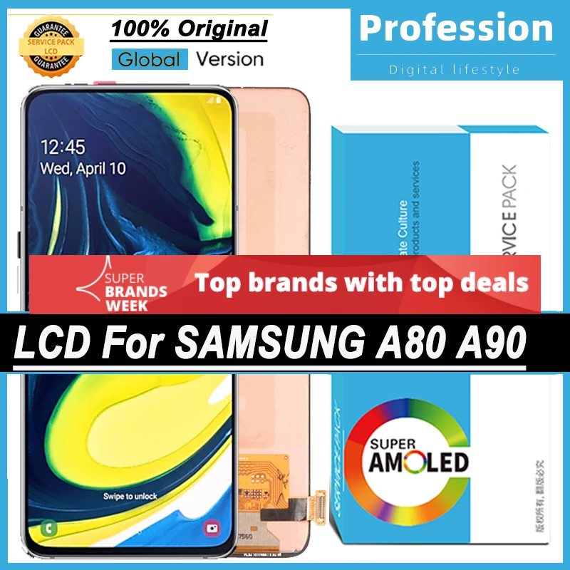 100% Оригинальный 6,7 ''AMOLED дисплей для Samsung Galaxy A80 A805F A90 A905F Полный ЖК-дисплей сенсорный экран дигитайзер в сборе запасные части
