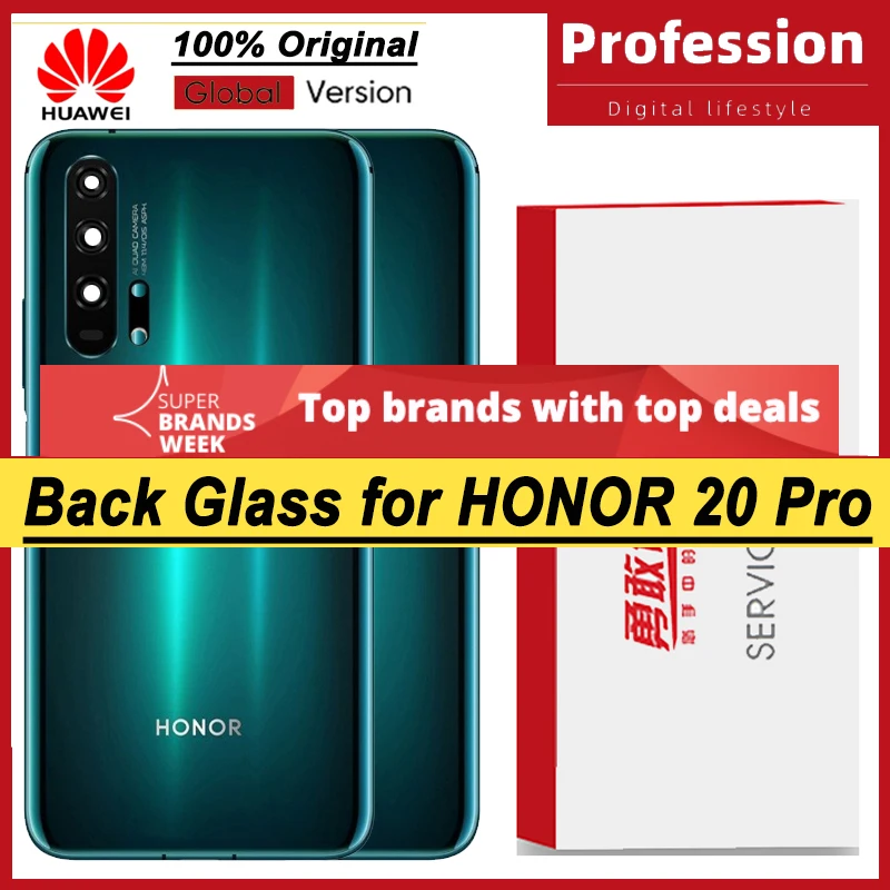 100% оригинальная задняя крышка батарейного отсека для Huawei Honor 20 Pro, Задняя стеклянная панель, Крышка батарейного отсека с объективом камеры