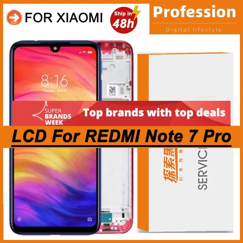 100% Оригинальный 6,3 "IPS дисплей с рамкой для XiaoMi Redmi Note 7...