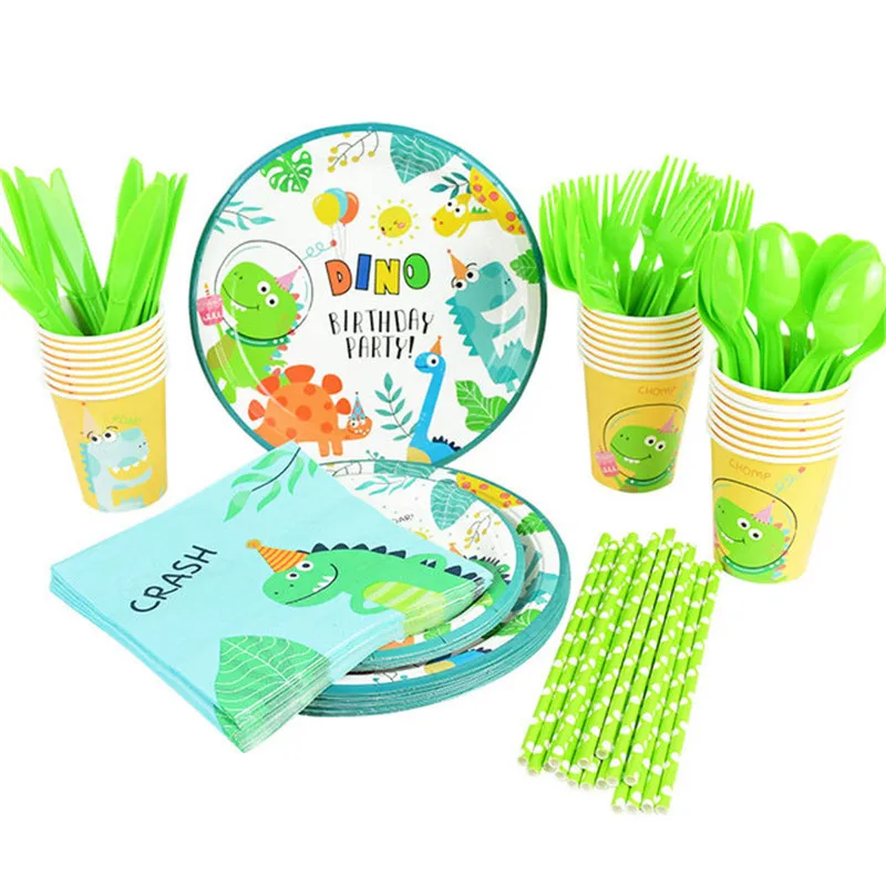 Одноразовая посуда для мальчиков и девочек, 1-16 шт.компл., динозав...