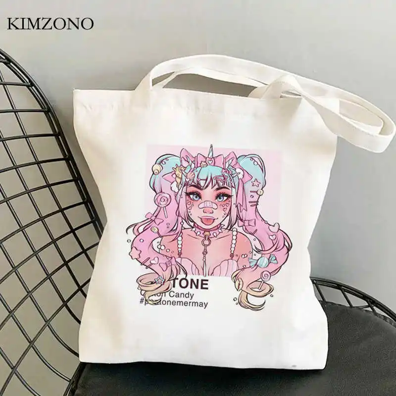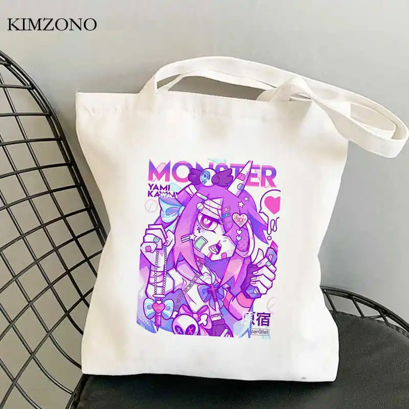 Японская аниме сумка для покупок в стиле Харадзюку, сумки для покупок, Холщовая Сумка, многоразовая тканевая сумка на ремне для покупок ecobag