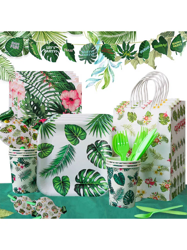Украшения для гававечерние, одноразовые тарелки с листьями, салфетки, летняя тропическая посуда джунглей для свадьбы, праздника, отдыха, дикой вечевечерние