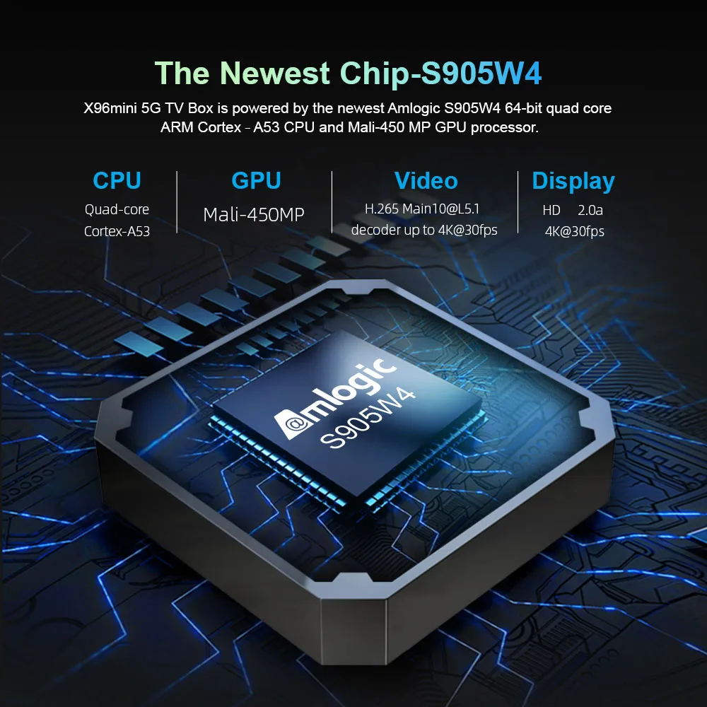 Эта новая модель x96mini g5 android tv box с процессором Amlogic S905W4 обеспечивает высокую и стабильную производительность. 4k ultra HD дисплей дает вам еще больший цвет и контрастность. Он также поддерживает 2,4g 5g wifi, который быстрее и стабильнее. Наслаждайтесь своим устройством на большом экране и Раскрасьте свою жизнь!