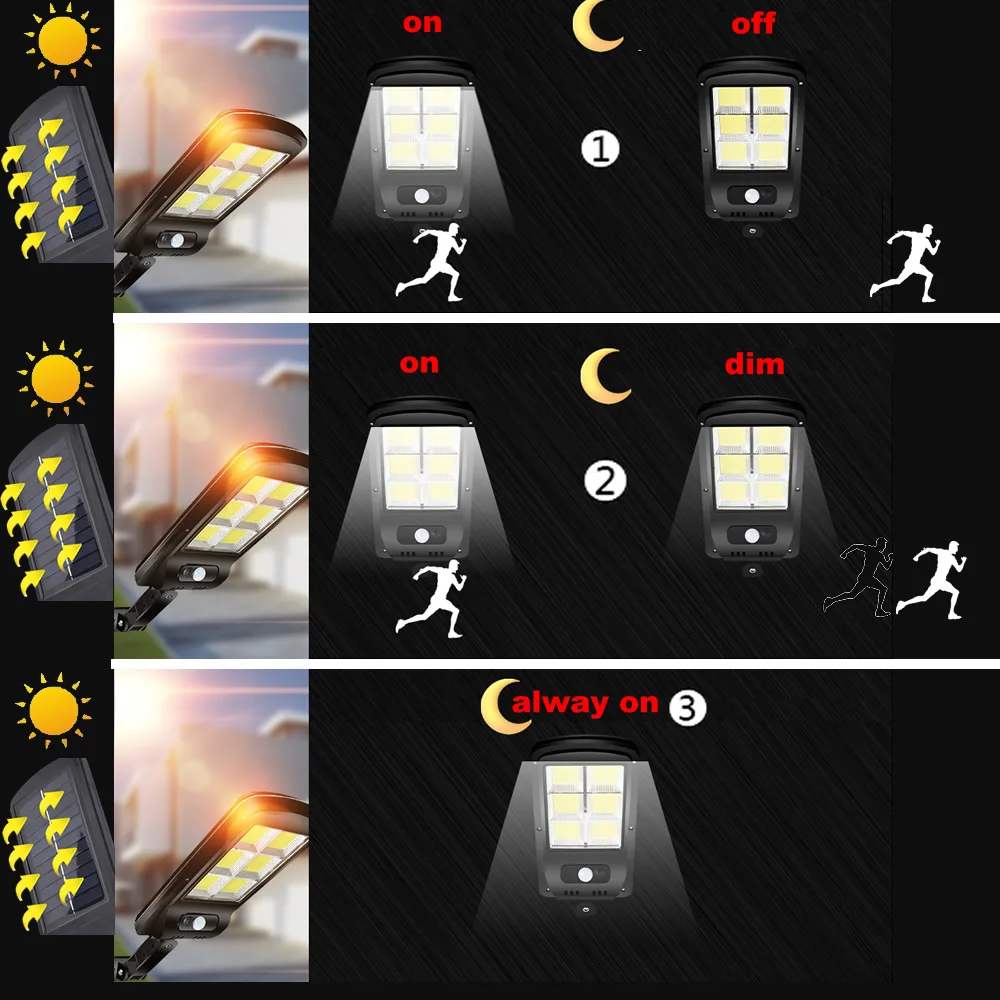Большой размер 120 COB светодиодный светильник на солнечных батареях, светильник на солнечных батареях, садовый светильник на солнечных батареях, настенный светильник с датчиком движения PIR, водонепроницаемый инфракрасный датчик, светильник, 3 режима работы, вращающийся кронштейн с пультом дистанционного управления, аккумулятор 2200MHA