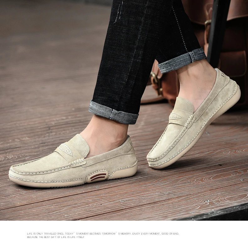 Мужские замшевые мокасины, темно-синие повседневные туфли из мягкой кожи, дышащие Нескользящие лоферы, обувь для вождения, большие размеры, лето 2021