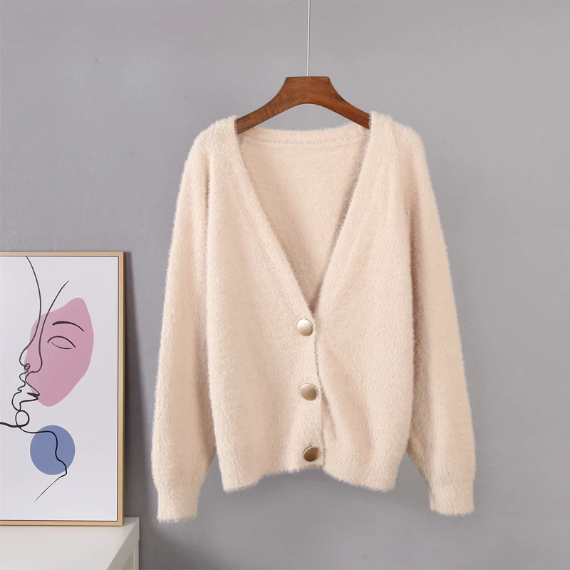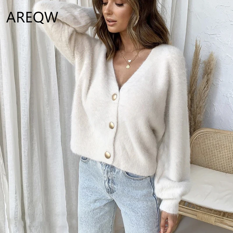 Новинка 2022, стильный женский мохеровый свитер с длинным рукавом, Новый однобортный женский короткий кардиган, мягкая эластичная вязаная верхняя одежда