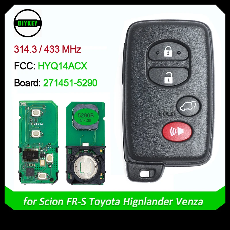 Пульт дистанционного управления DIYKEY Smart Prox Key 314,3 МГц433 МГц для Scion FR-S Toyota Hignlander Venza FCC: HYQ14ACX 271451-5290 E Board