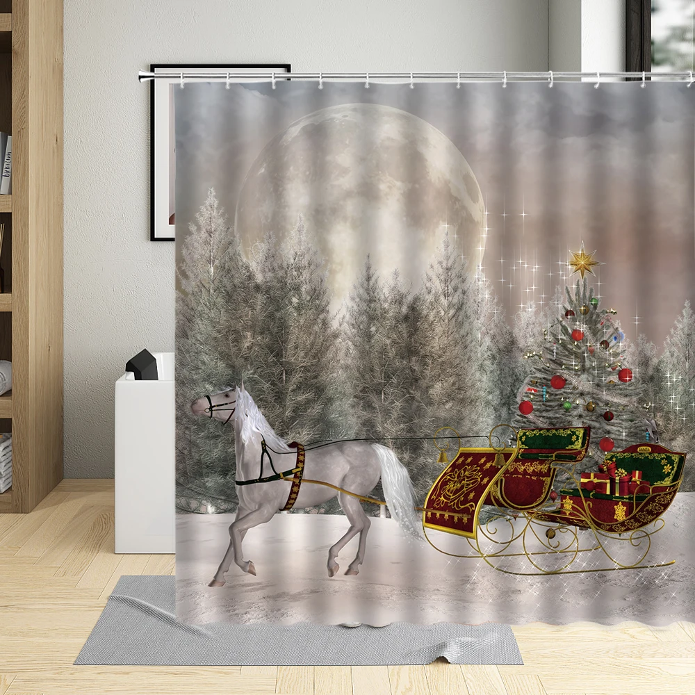 Зимний лес, рождественские занавески для душа, зеленая Рождественск...