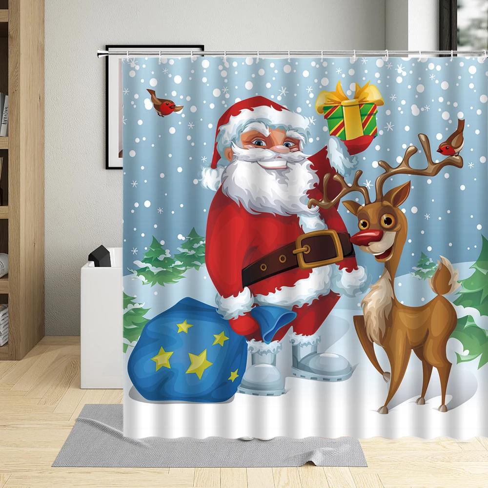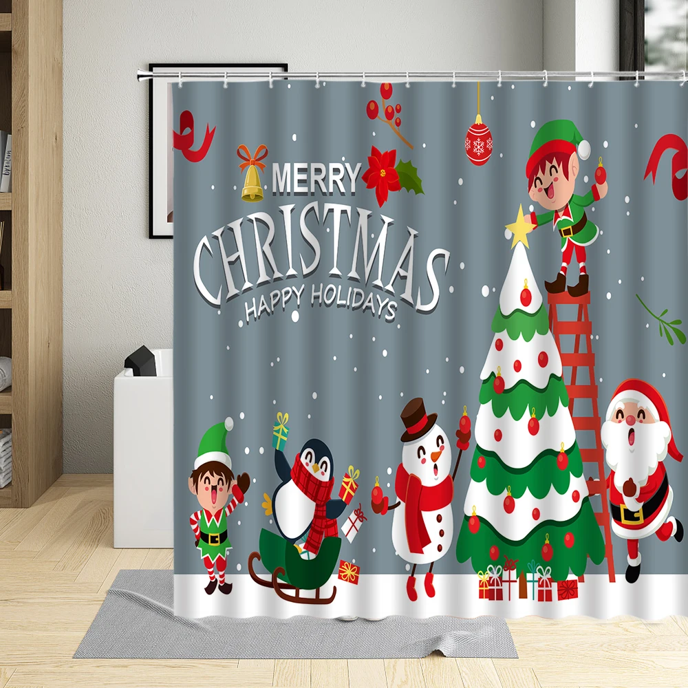 Рождественская занавеска для душа в стиле ретро с изображением масл...