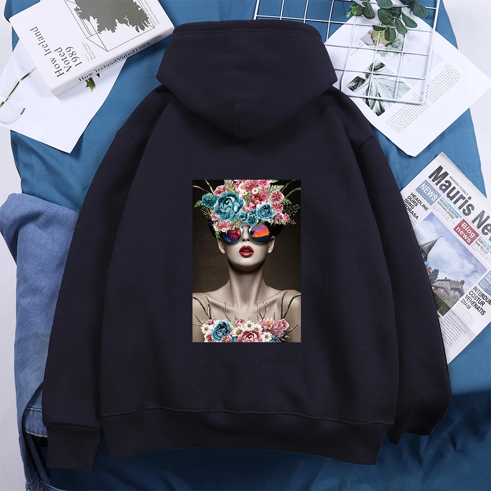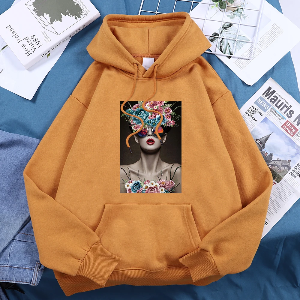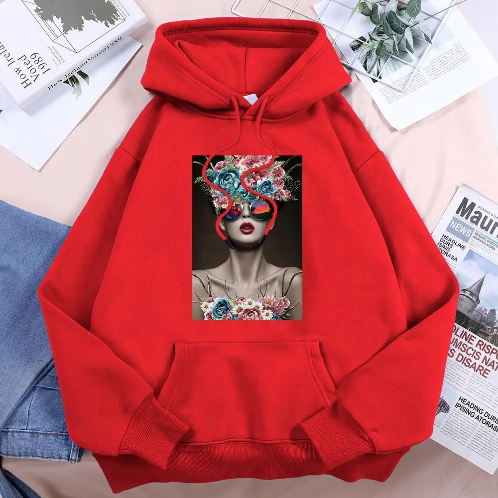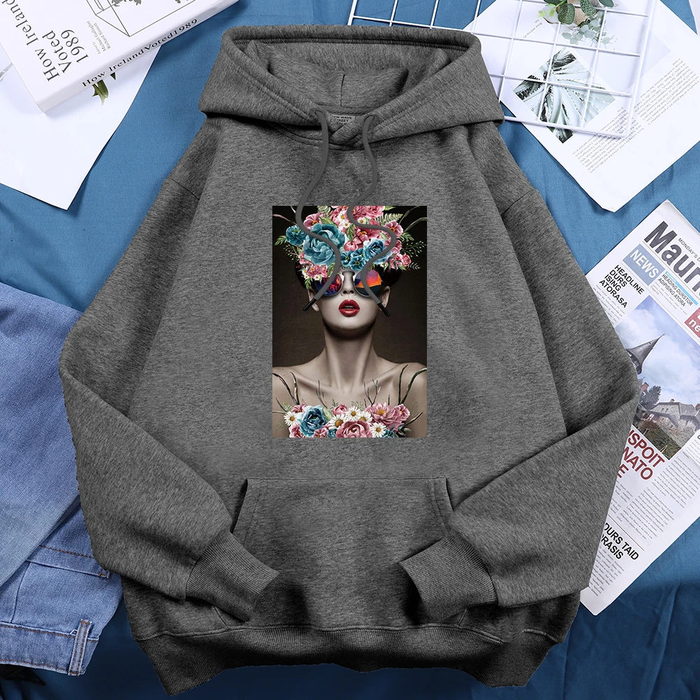 Худи женское свободное с цветочным принтом, модная Толстовка Оверсайз, худи с графическим принтом