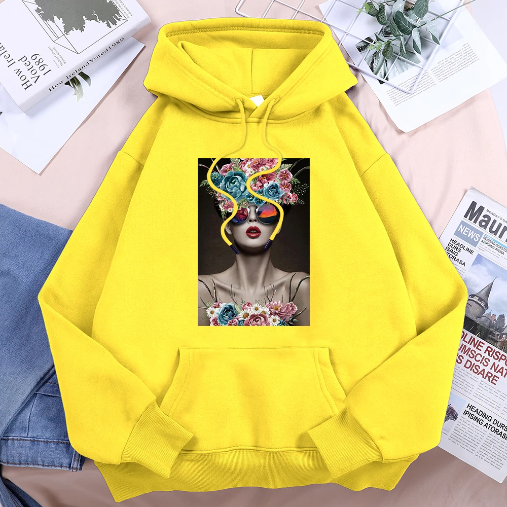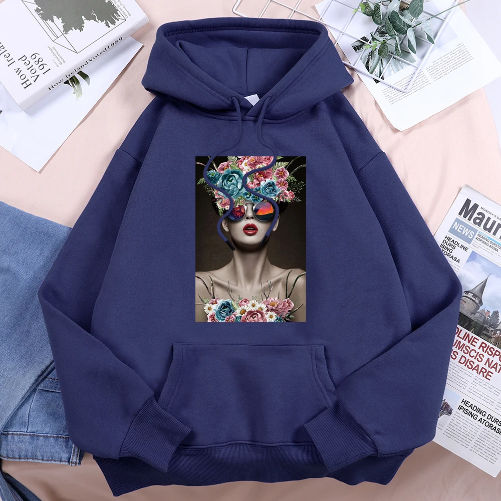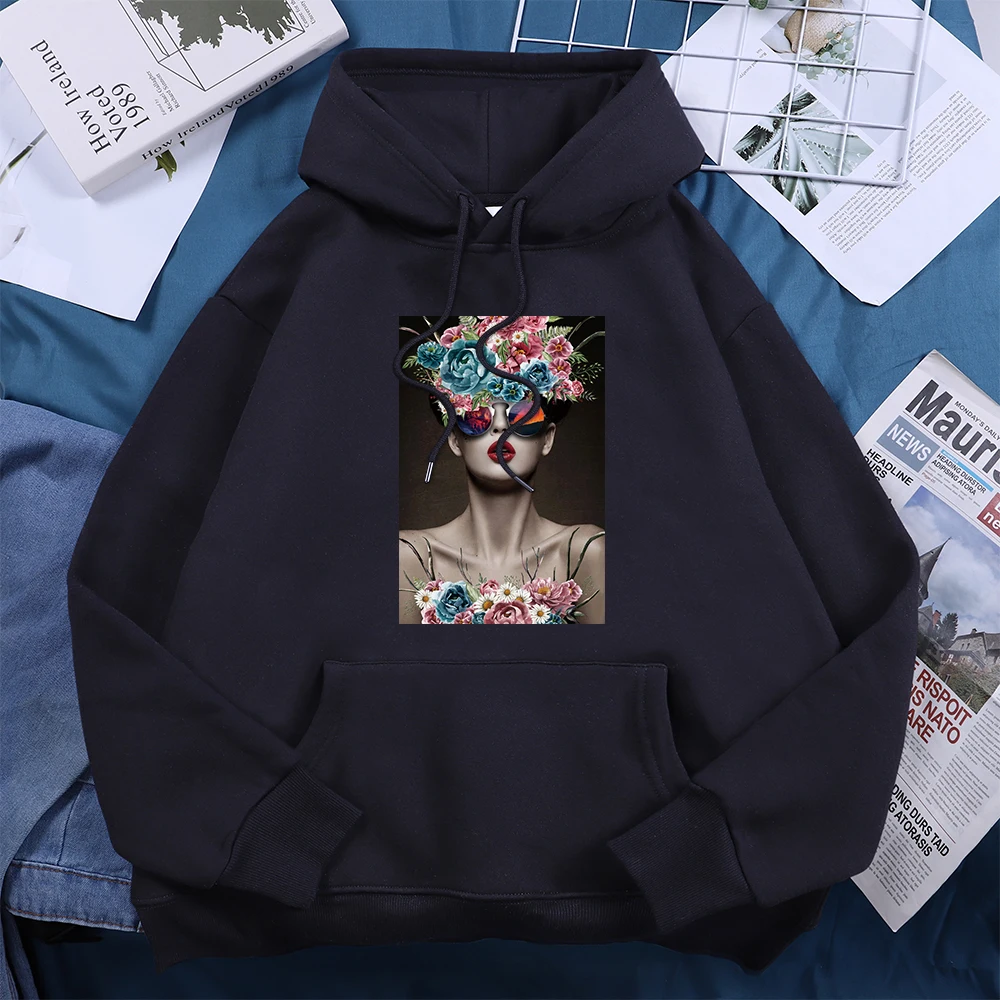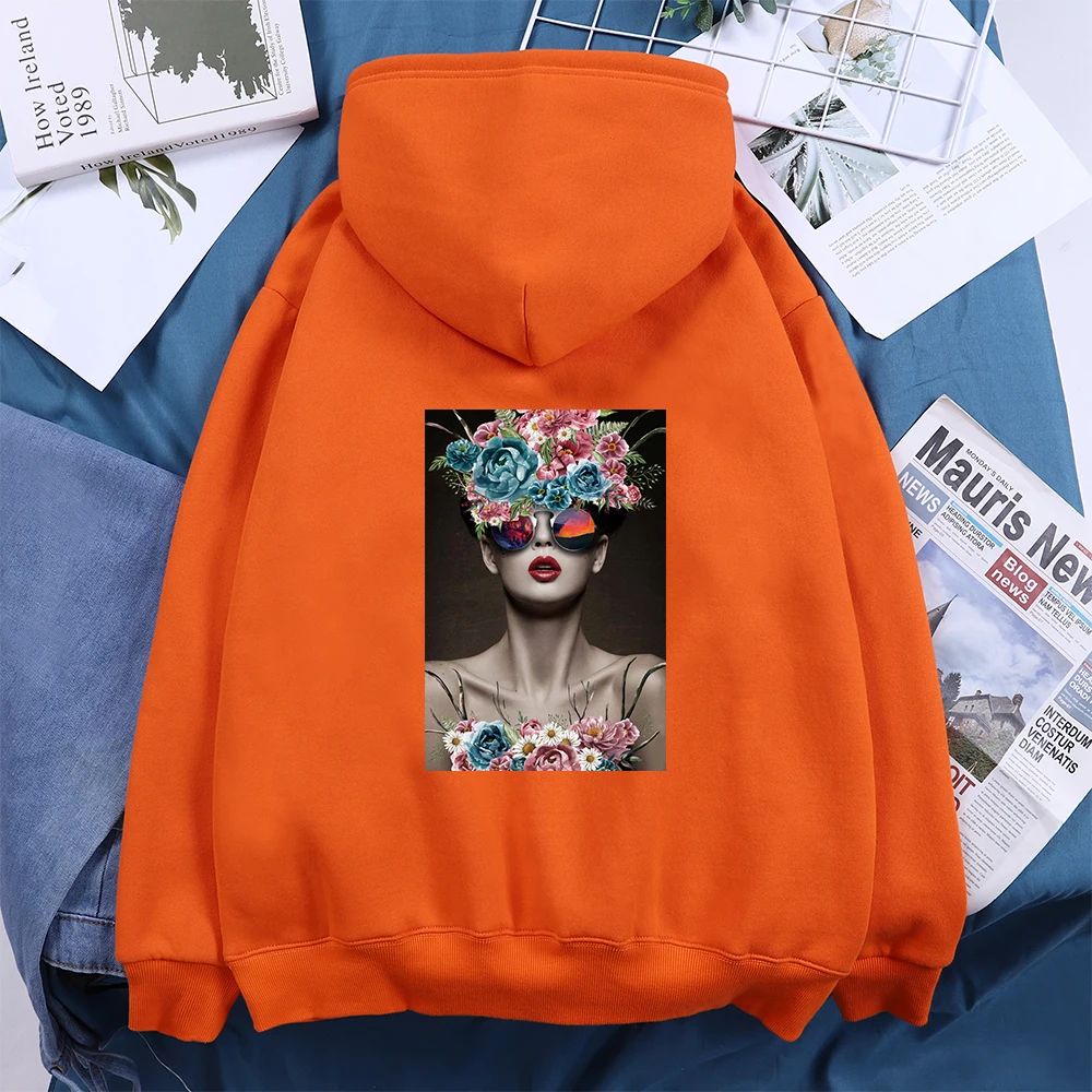 Худи женское свободное с цветочным принтом, модная Толстовка Оверсайз, худи с графическим принтом