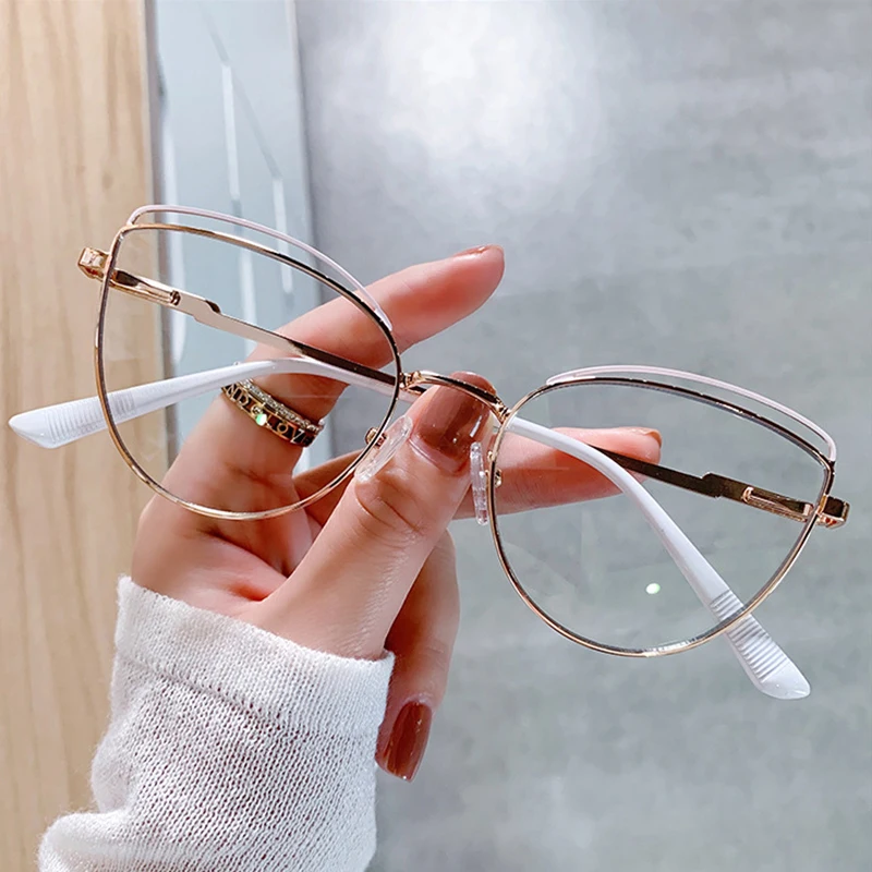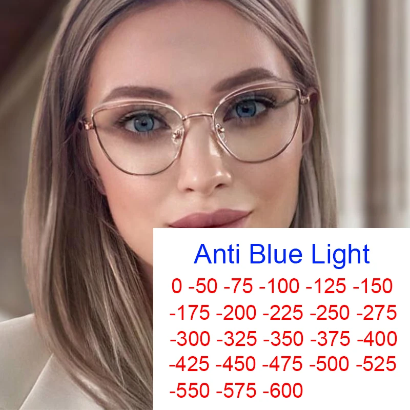 2021 трендовые офисные очки для близорукости с защитой от синего света женские металлические очки в большой оправе кошачий глаз готовые очки по рецепту очки для компьютера