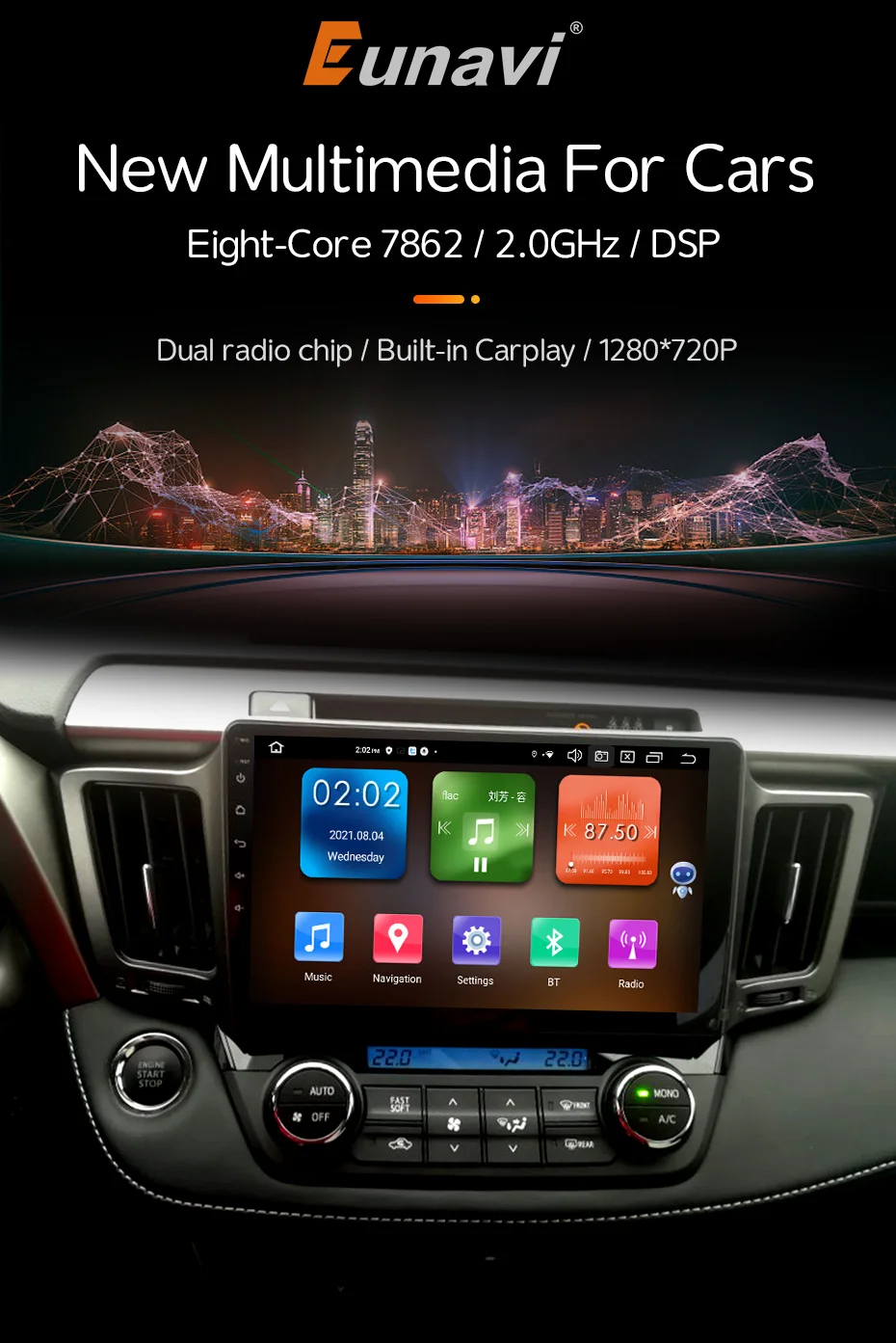 Eunavi 6G 128G Android 11 автомобильное радио для Toyota RAV4 2013 2014 2015 - 2018 мультимедиа плеер Видео Аудио головное устройство GPS 2DIN DVD
