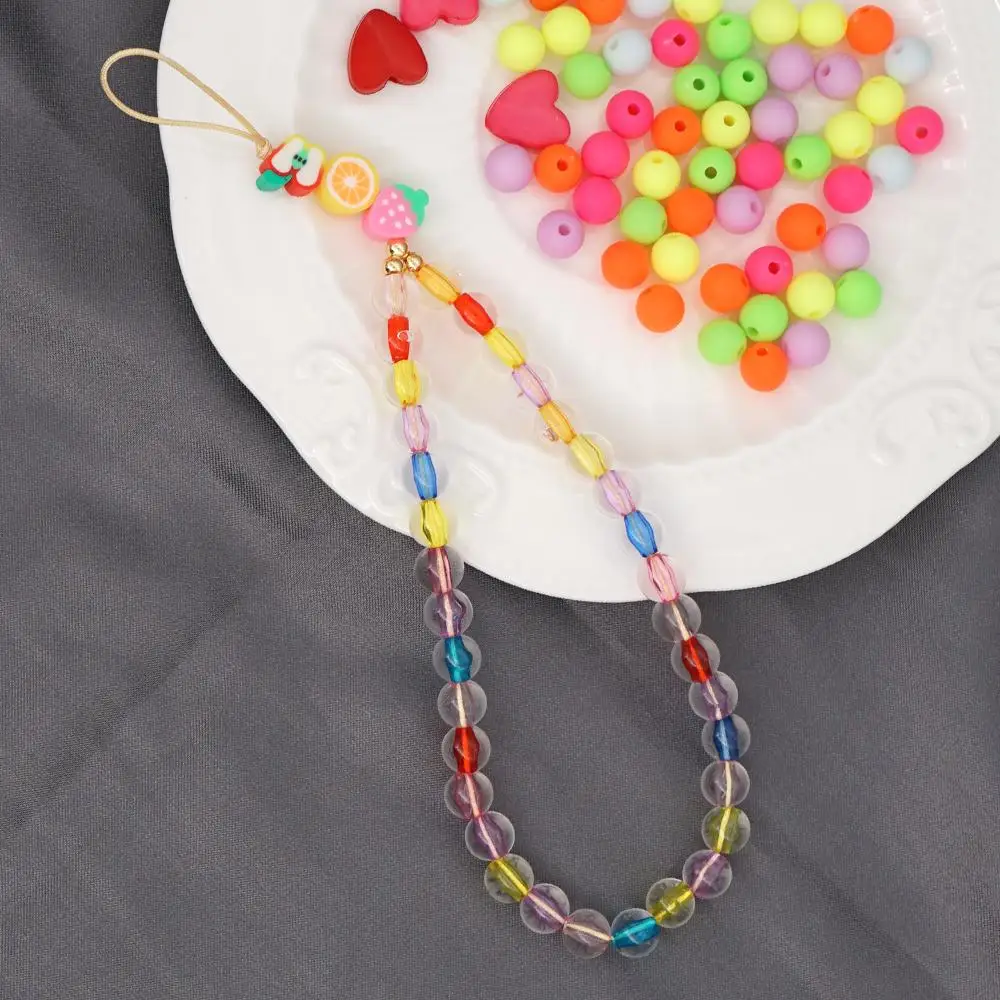Летняя цепочка для телефона с разноцветными конфетными бусинами ремень с цепочкой и буквенным браслетом для женщин тренд смайлик милое ювелирное изделие