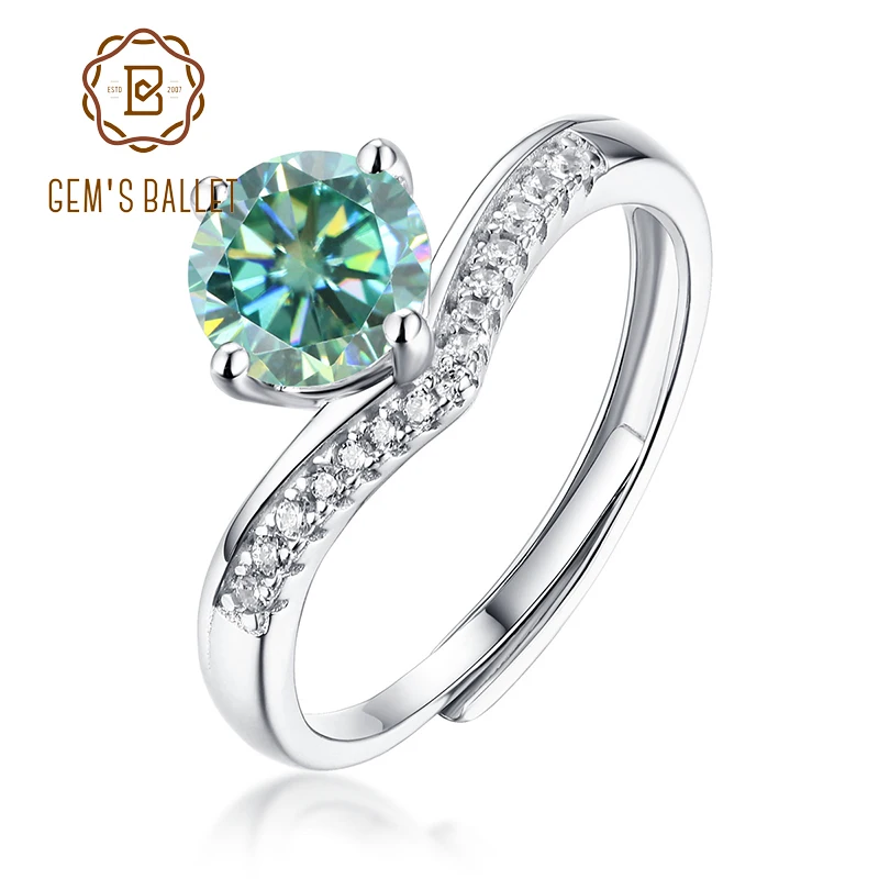 Регулируемые кольца из серебра с муассанитом, 6,5 карат, мм